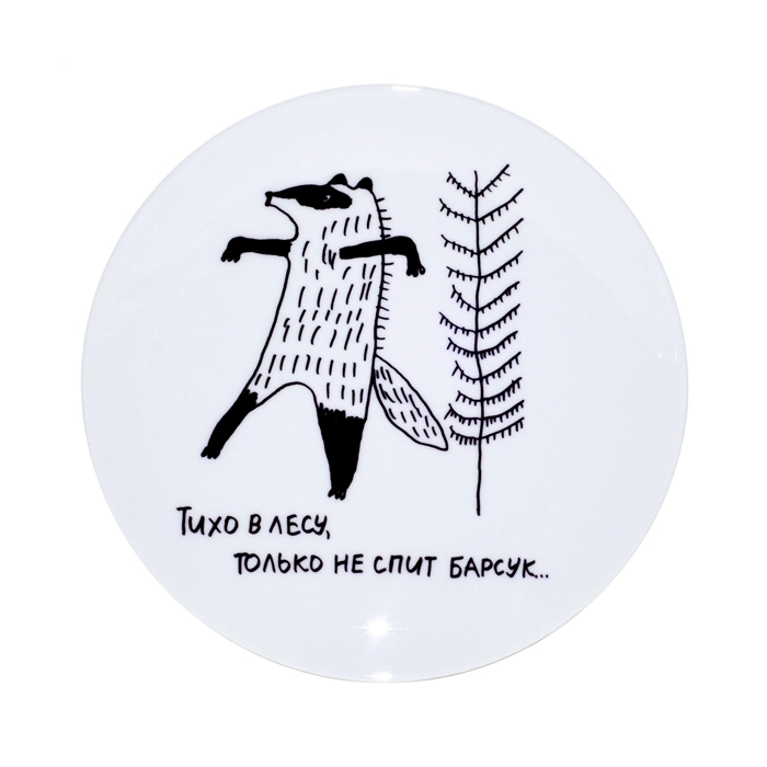 Тарелка керамическая сувенирная с рисунком "Барсук"