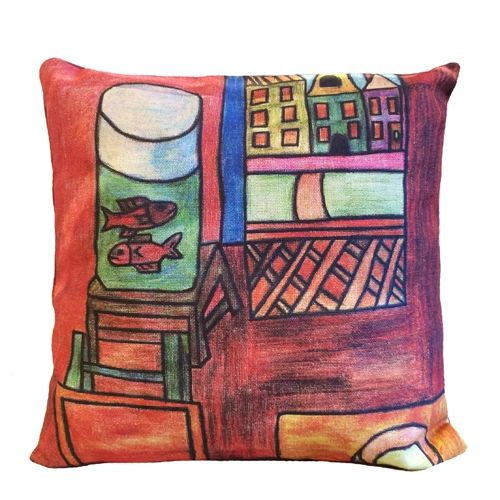 Подушка с принтом "Красные рыбы"