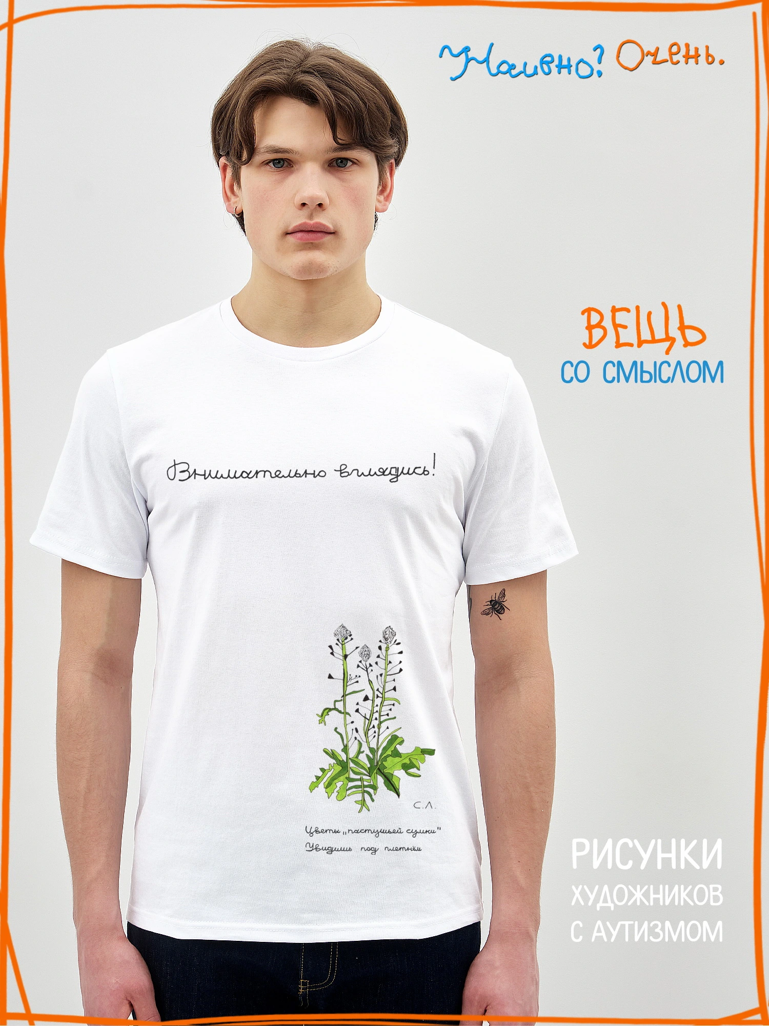 Футболка с рисунком нашего социального проекта - хороший подарок со смыслом. Наши футболки дарят тепло, радость и хорошее настроение. Этот проект создан для социализации и трудоустройства молодых людей с аутизмом и другими особенностями развития ментального характера. Творчество для таких людей - мостик в наш мир, возможность раскрыть свой потенциал, самореализоваться и зарабатывать. Печатая их рисунки на различной продукции, мы не только монетизируем их труд, но и получаем очень душевные вещи, которыми всегда приятно порадовать себя и близких. Каждая работа, представленная здесь, выполнена с любовью. Покупая эти очаровательные вещи, и даже просто рассказывая о нас, вы поможете сделать мир хоть немного добрее и лучше!