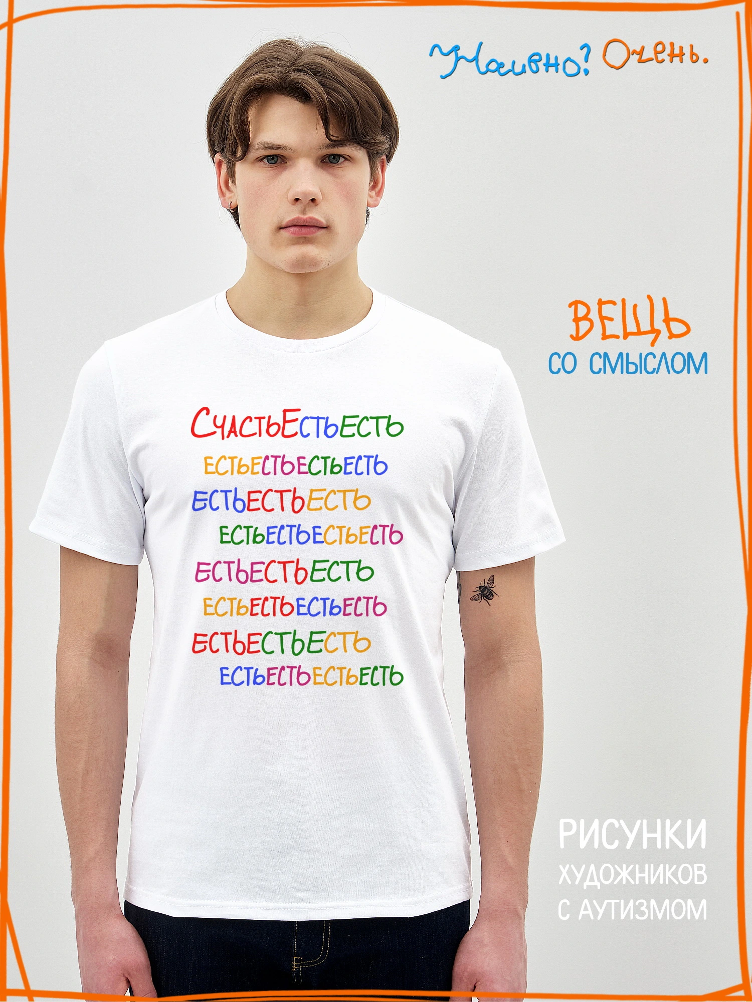 Футболка с рисунком нашего социального проекта - хороший подарок со смыслом. Наши футболки дарят тепло, радость и хорошее настроение. Этот проект создан для социализации и трудоустройства молодых людей с аутизмом и другими особенностями развития ментального характера. Творчество для таких людей - мостик в наш мир, возможность раскрыть свой потенциал, самореализоваться и зарабатывать. Печатая их рисунки на различной продукции, мы не только монетизируем их труд, но и получаем очень душевные вещи, которыми всегда приятно порадовать себя и близких. Каждая работа, представленная здесь, выполнена с любовью. Покупая эти очаровательные вещи, и даже просто рассказывая о нас, вы поможете сделать мир хоть немного добрее и лучше!