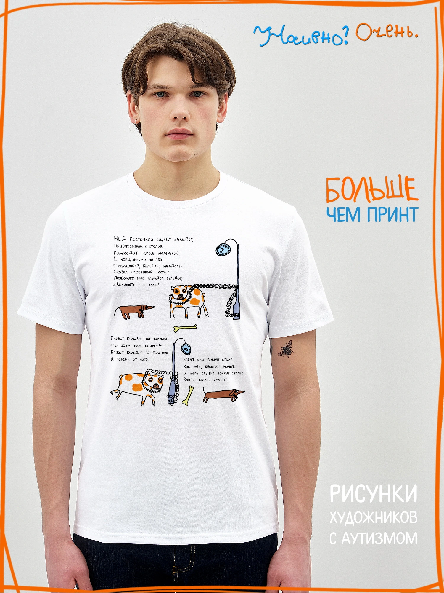 Футболка с рисунком нашего социального проекта - хороший подарок со смыслом. Наши футболки дарят тепло, радость и хорошее настроение. Этот проект создан для социализации и трудоустройства молодых людей с аутизмом и другими особенностями развития ментального характера. Творчество для таких людей - мостик в наш мир, возможность раскрыть свой потенциал, самореализоваться и зарабатывать. Печатая их рисунки на различной продукции, мы не только монетизируем их труд, но и получаем очень душевные вещи, которыми всегда приятно порадовать себя и близких. Каждая работа, представленная здесь, выполнена с любовью. Покупая эти очаровательные вещи, и даже просто рассказывая о нас, вы поможете сделать мир хоть немного добрее и лучше!