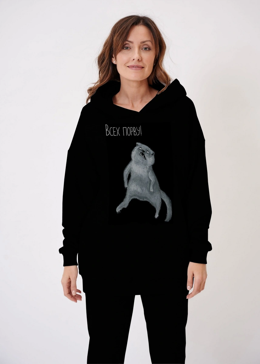 Худи оверсайз "Всех порву!" (Серые будни Патрика. Понедельник) — отзывы