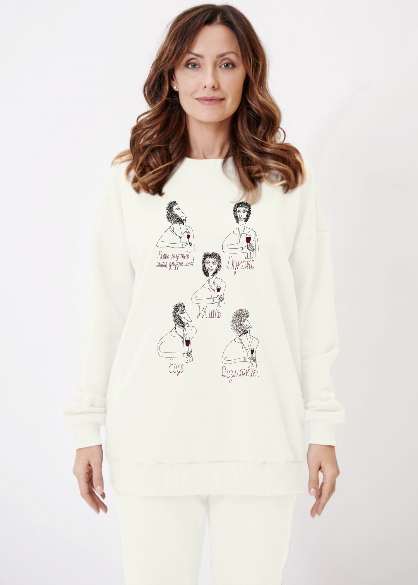 Параметры моделей на фото - 92-65-95 рост 175 см. На ней свитшот размера S (46) и 85-62-89 рост 174 см. На ней свитшот размера XS (44).