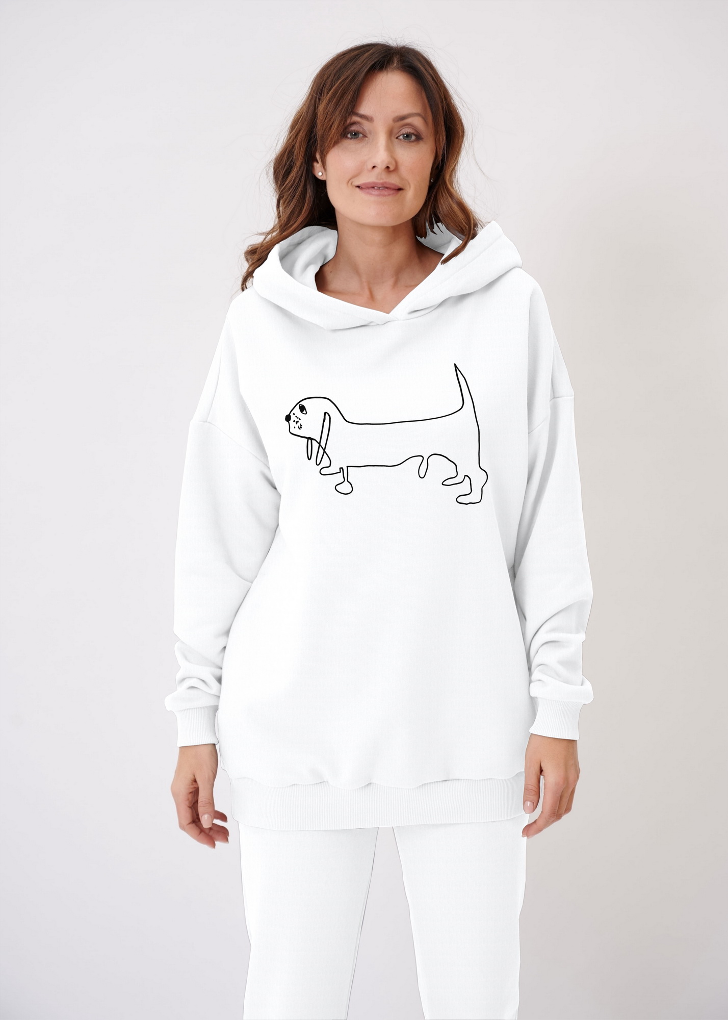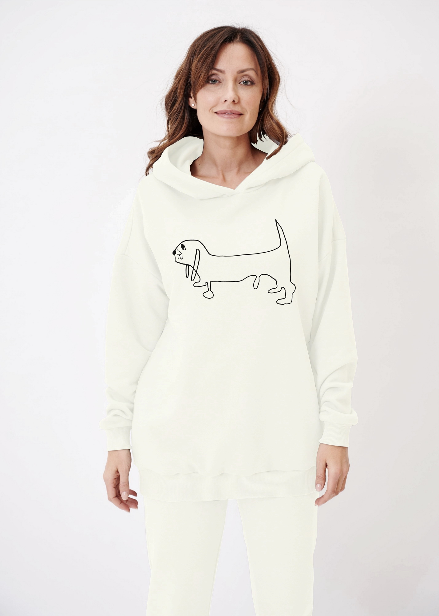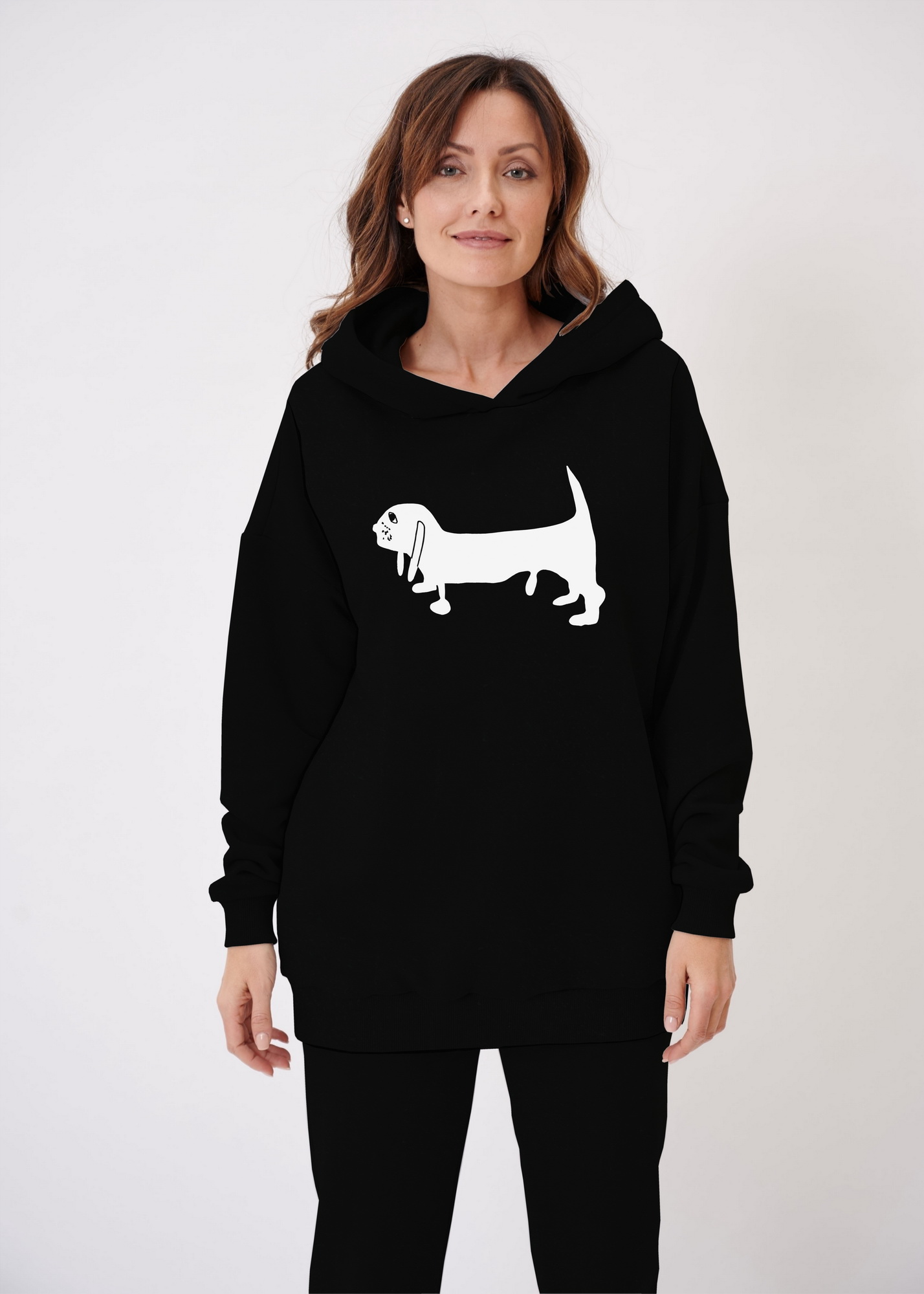 Вариант без текста принта "Басов" Эта работа с большой интересной историей. Мы всегда стараемся по-максимуму оставлять авторский текст, который пишут ребята. В этом так много настоящего, не притворного! Иногда это бывают просто ошибки, а иногда вдруг, то что автор услышал и увидел поворачивает идею в неожиданное русло! Так произошло с работой Ашота. Все ребята к Новому году рисуют разных собак. Ашоту предложили нарисовать собаку породы бассет и текстом "Собака Бассет". В итоге вышел вот такой рисунок и текст "Собака по имени Басов", что сразу же у нас вызвало ассоциацию с Ричардом Бахом и его "Чайкой по имени Джонатан Ливингстон", поэтому родилась идея текста "To the real Basov Dog, Who lives within us all." (Невыдуманному Басову-собаке, живущему в каждом из нас.)