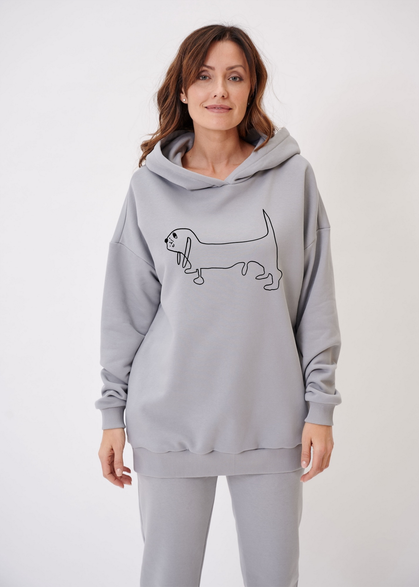 Параметры модели на фото - 92-65-95 рост 175 см. На ней худи размера S (46).