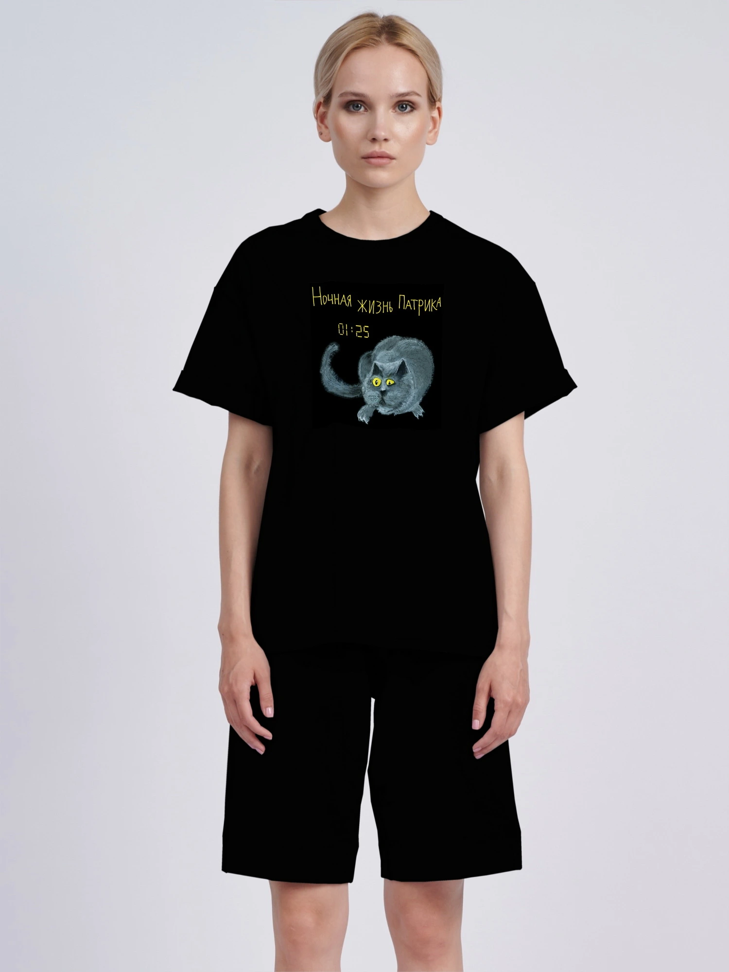 Футболка оверсайз "Ночная жизнь Патрика 01:25"
