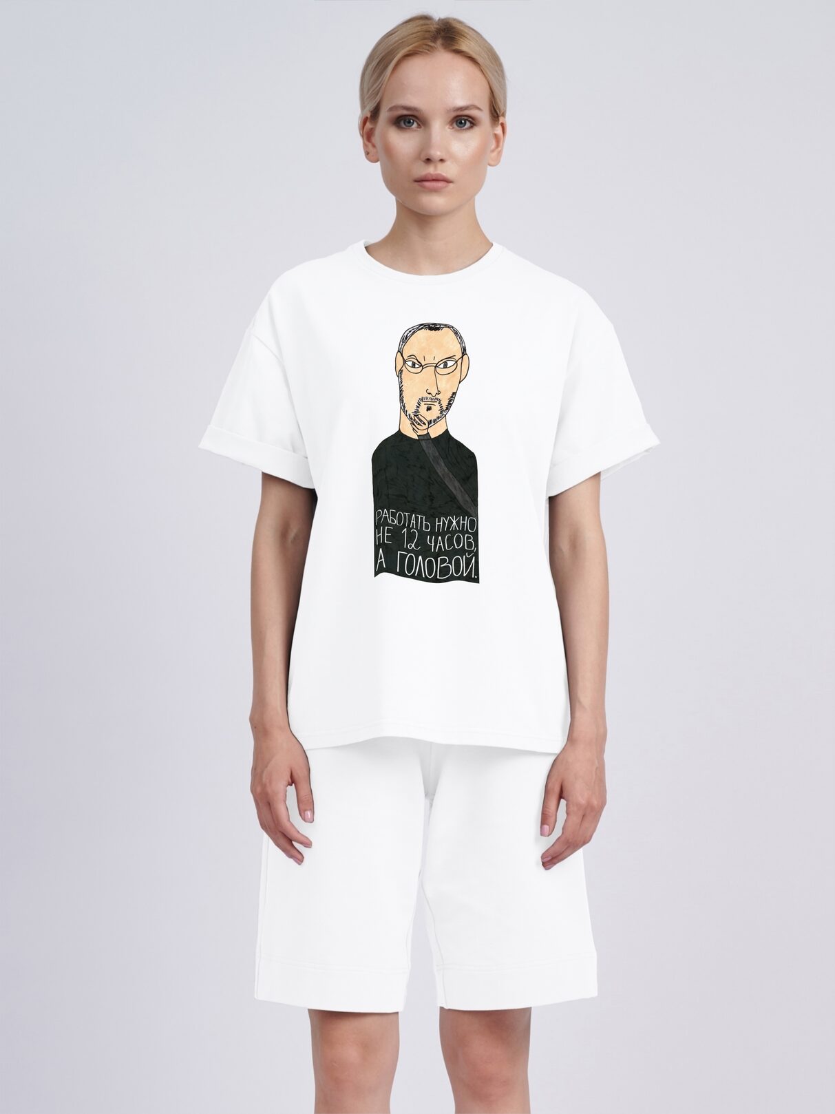 Футболка оверсайз "Работать нужно не 12 часов, а головой"