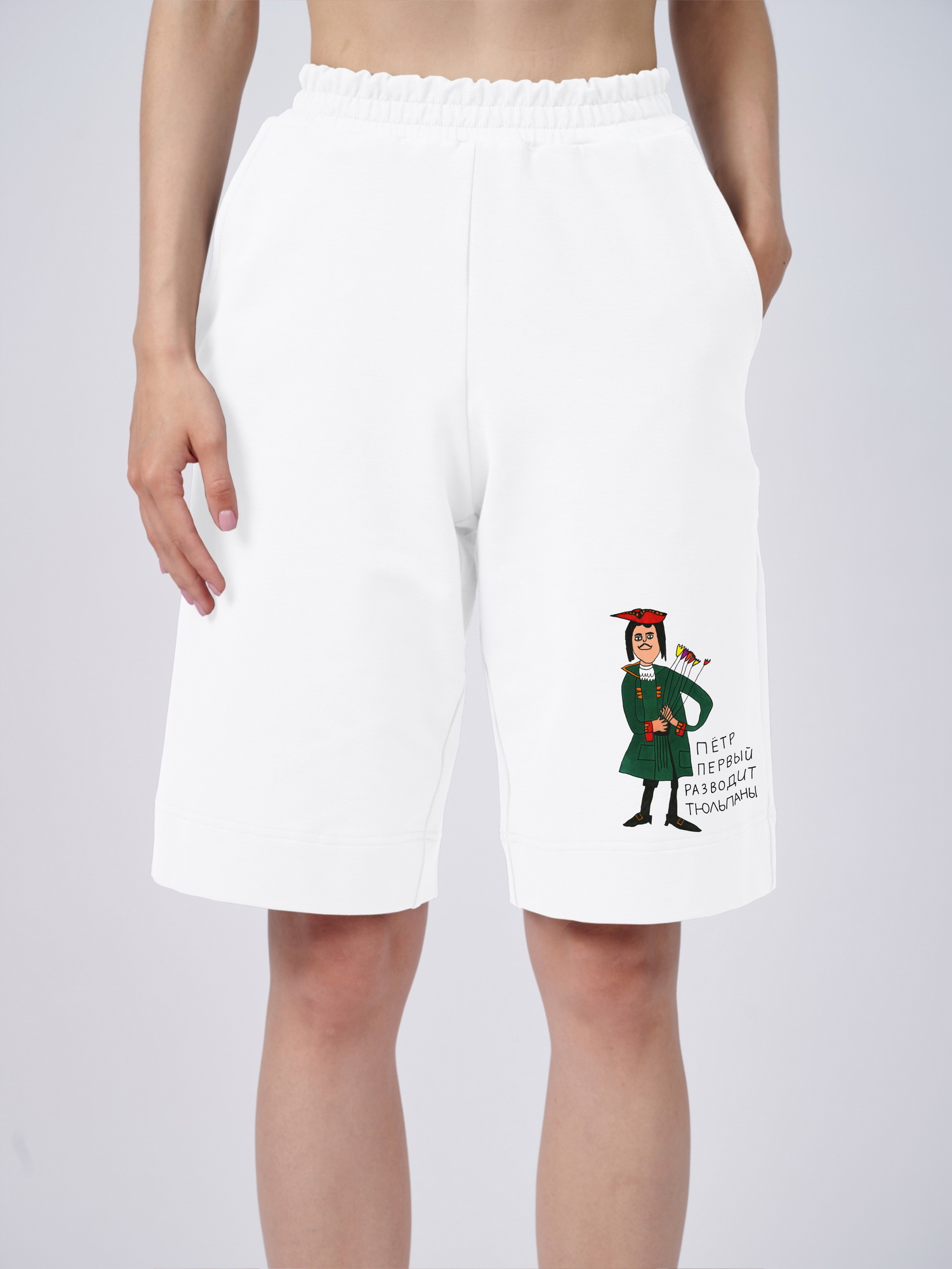 Шорты бермуды "Петр Первый разводит тюльпаны"