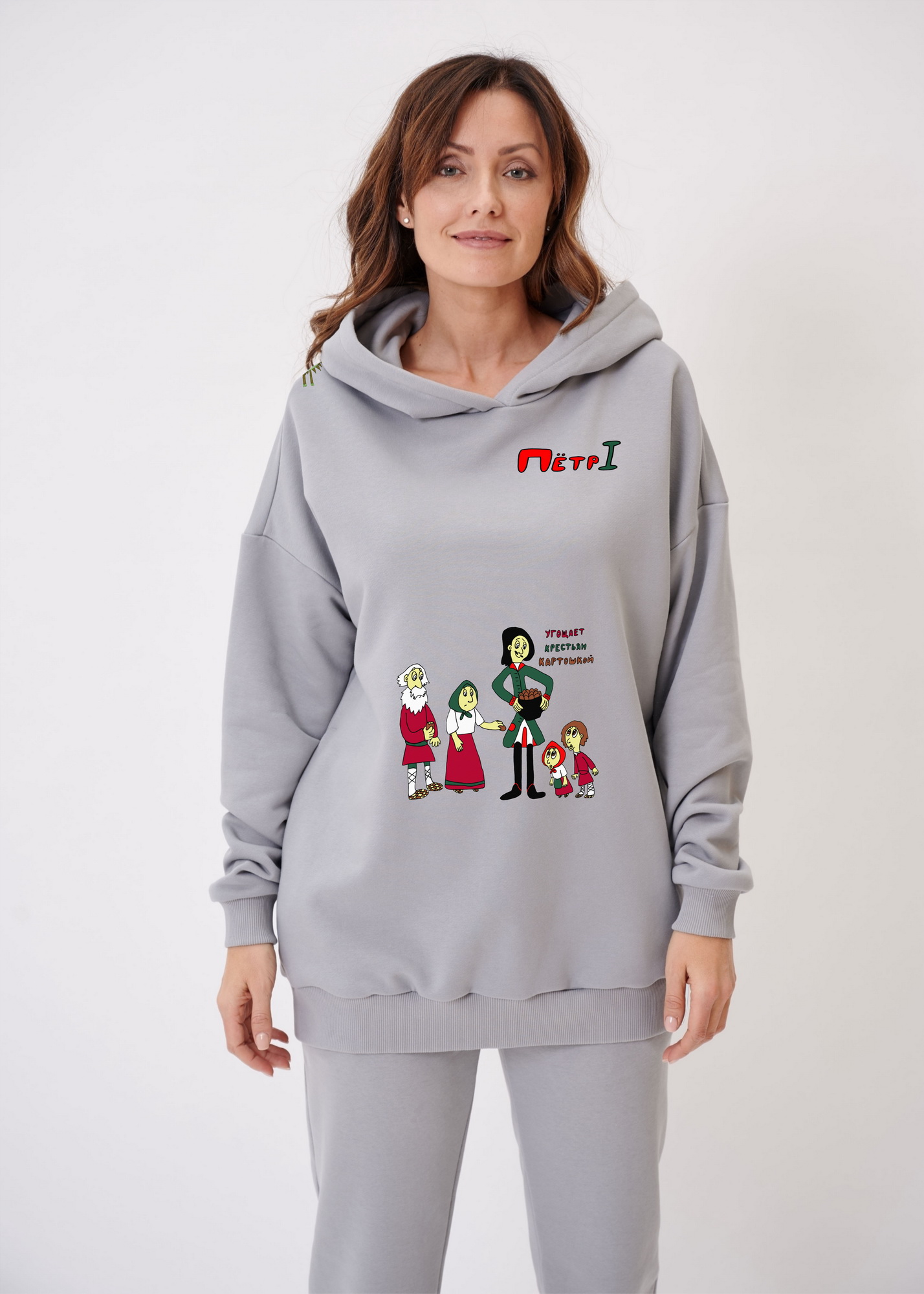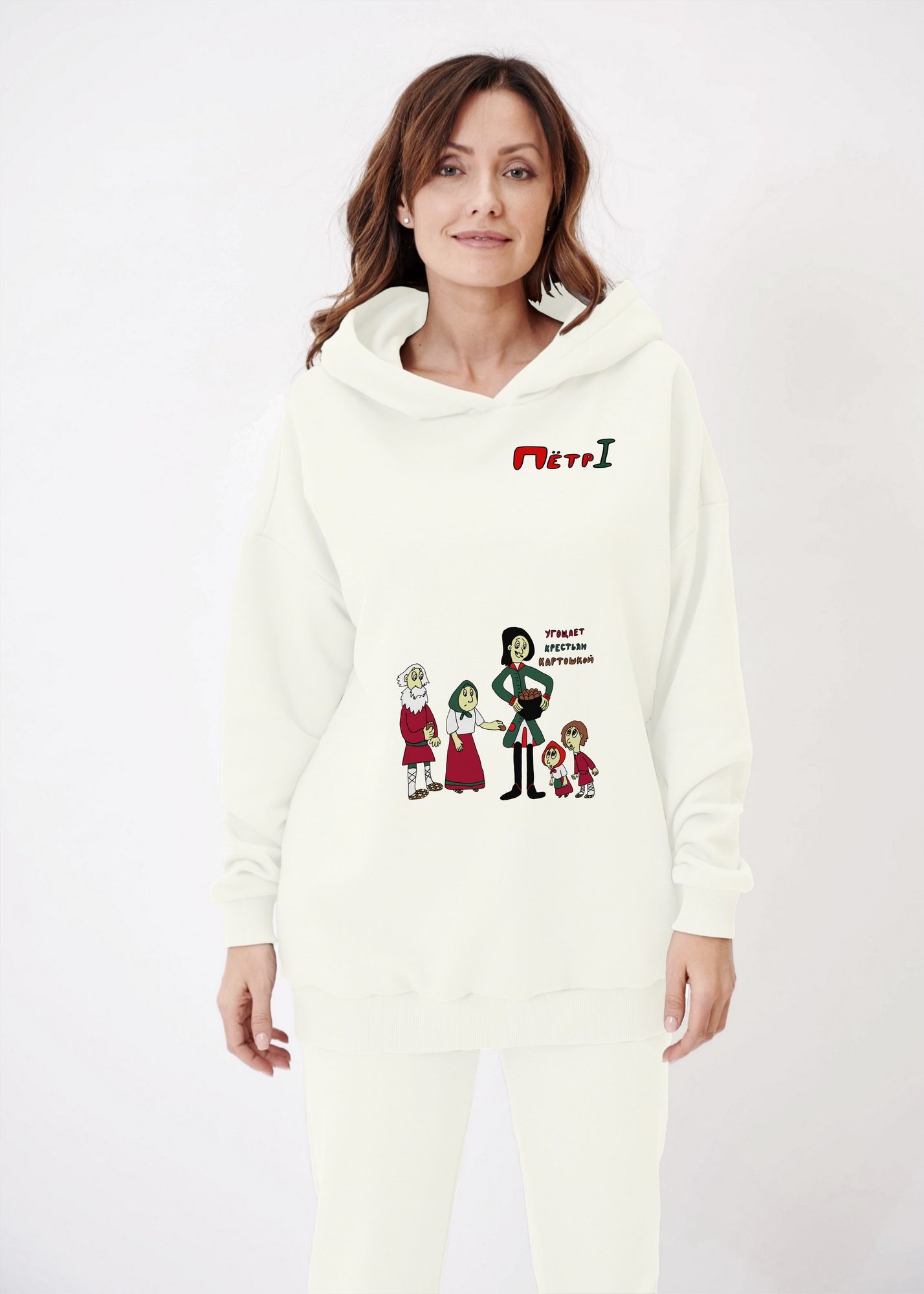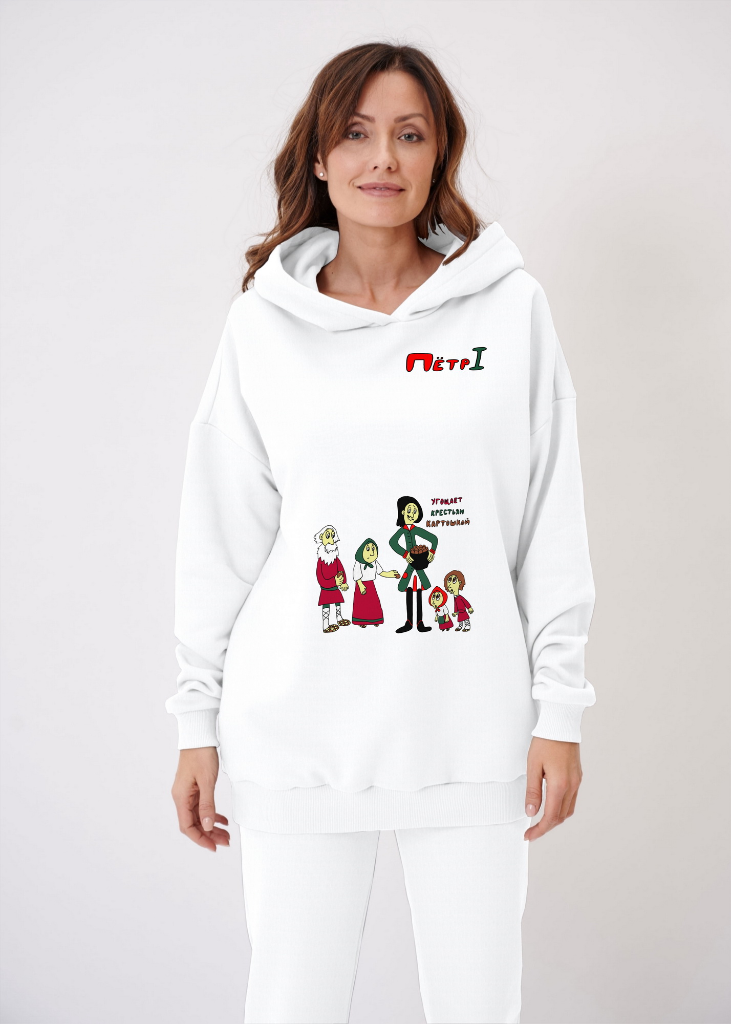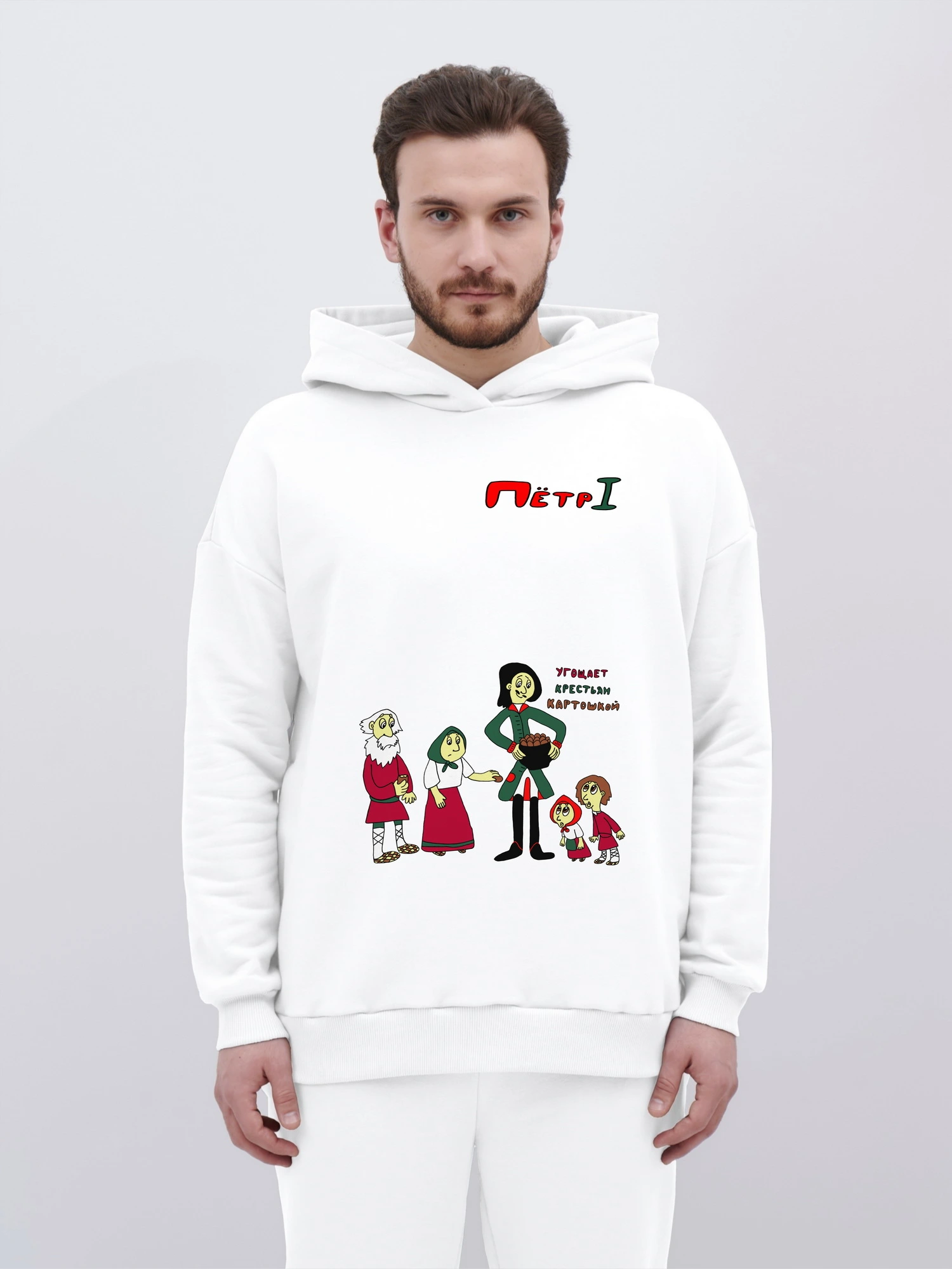 Худи оверсайз "Петр Первый угощает крестьян картошкой"
