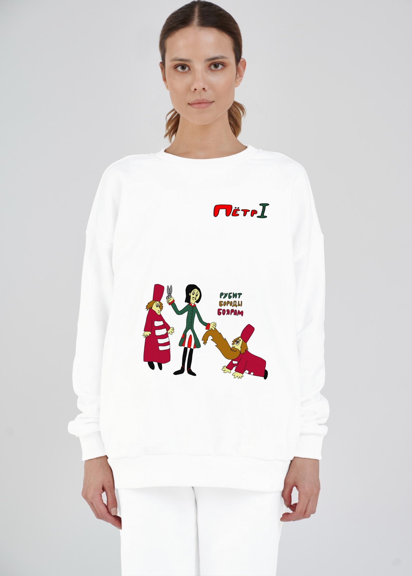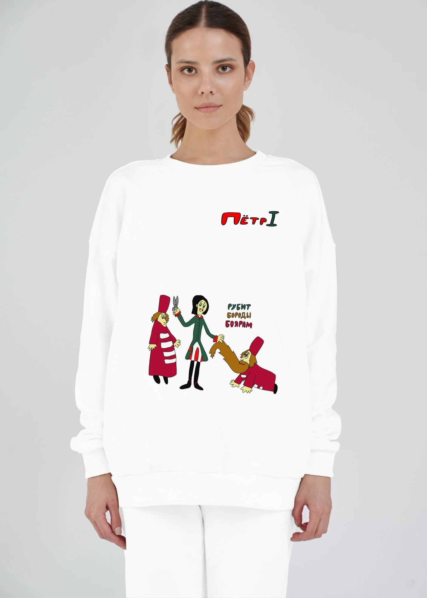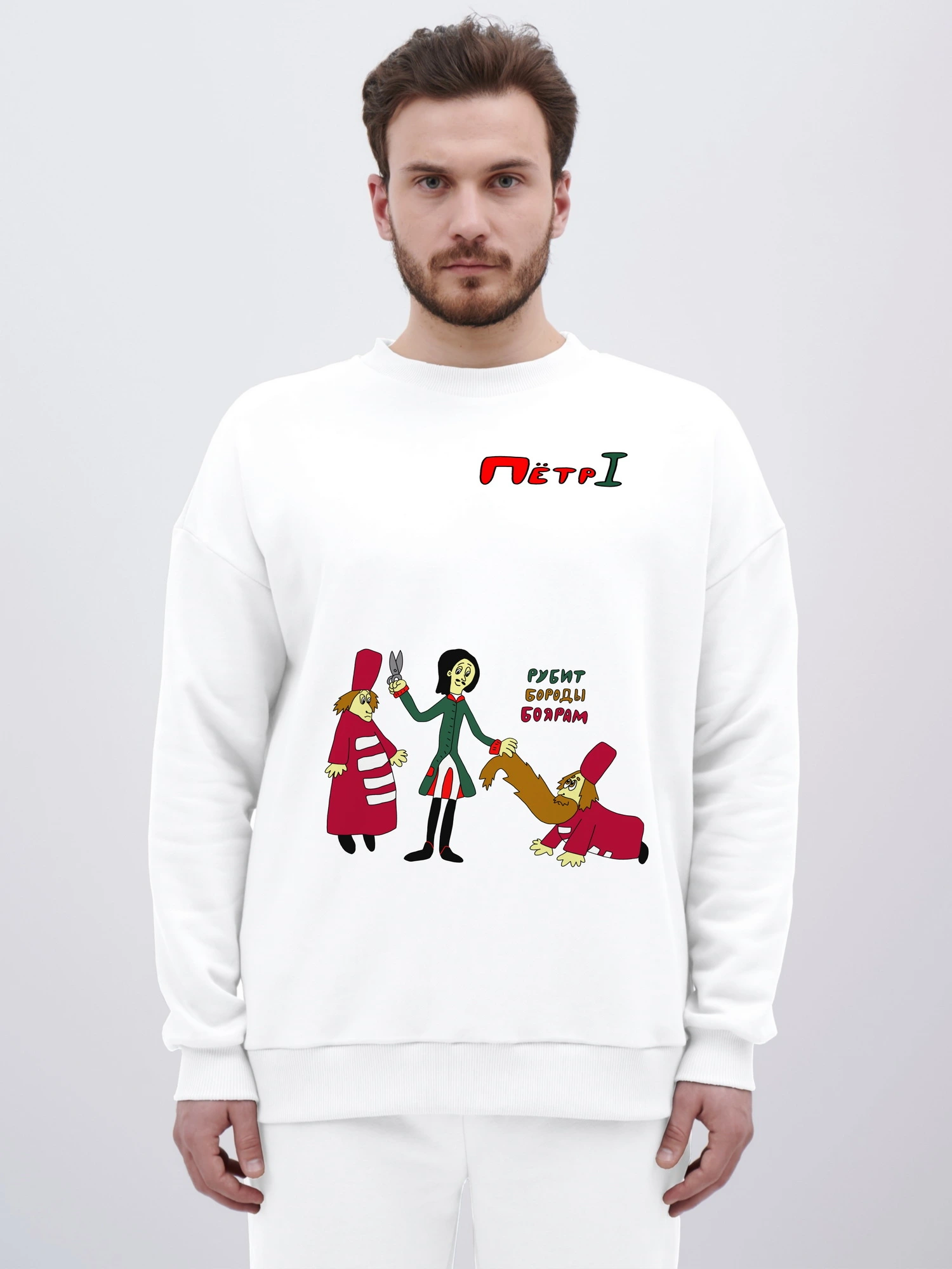 Свитшот оверсайз "Пётр Первый рубит бороды боярам"