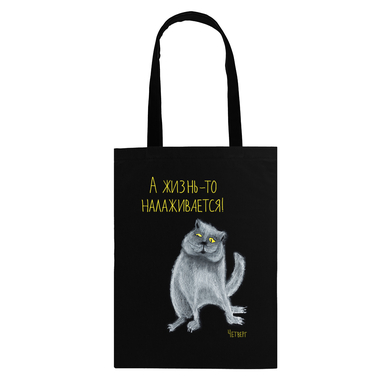 Сумка текстильная "А жизнь то налаживается!" (Серые будни Патрика. Четверг)