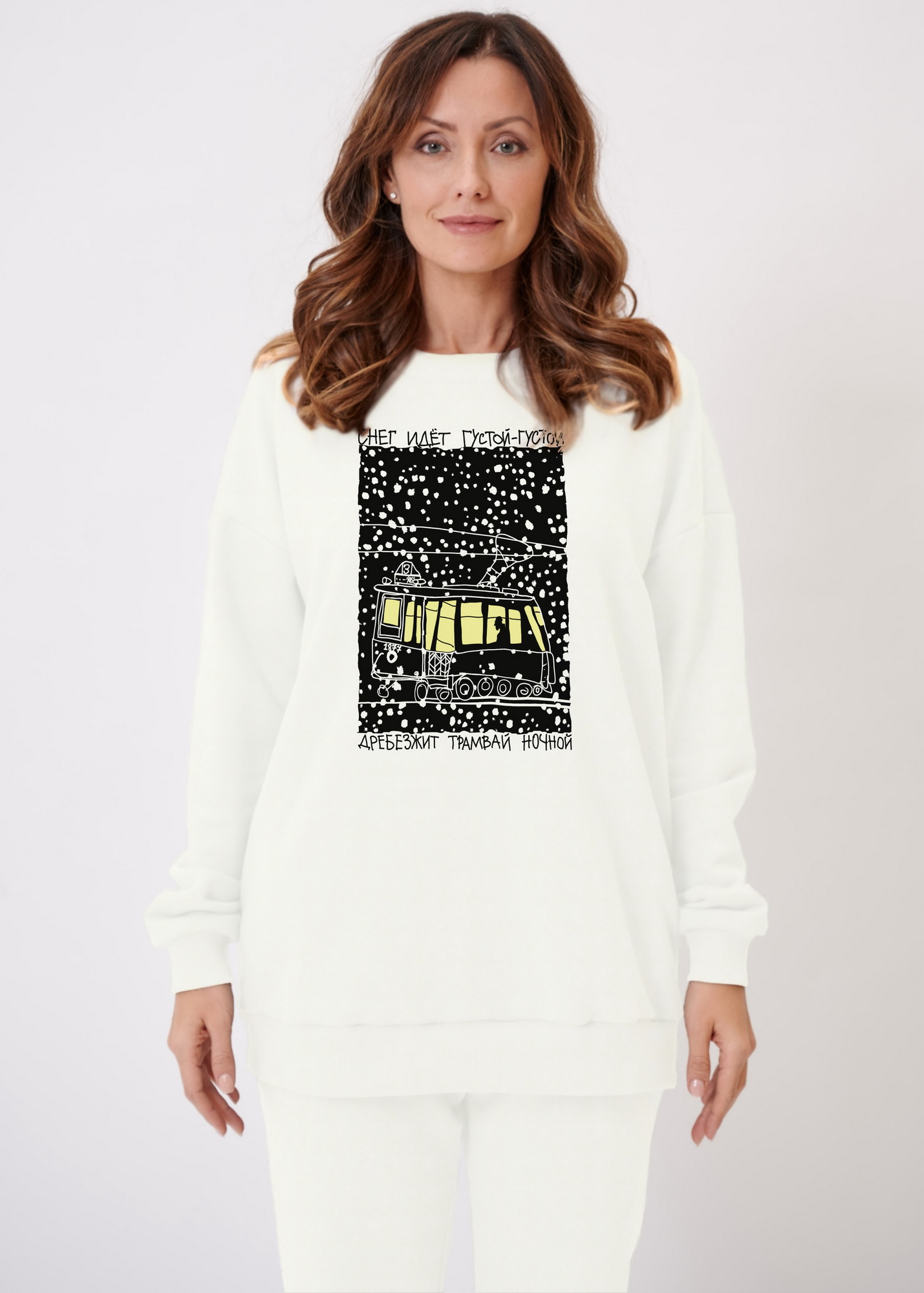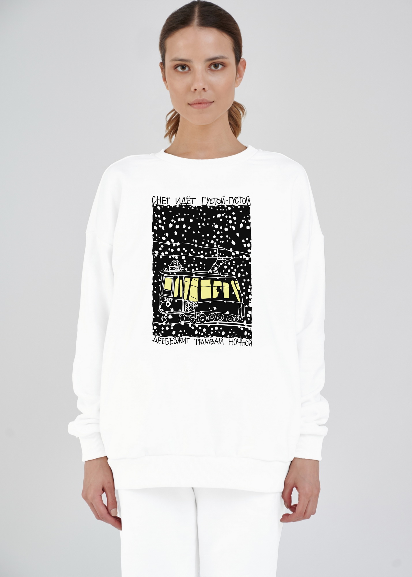 Свитшот оверсайз "Дребезжит трамвай ночной"