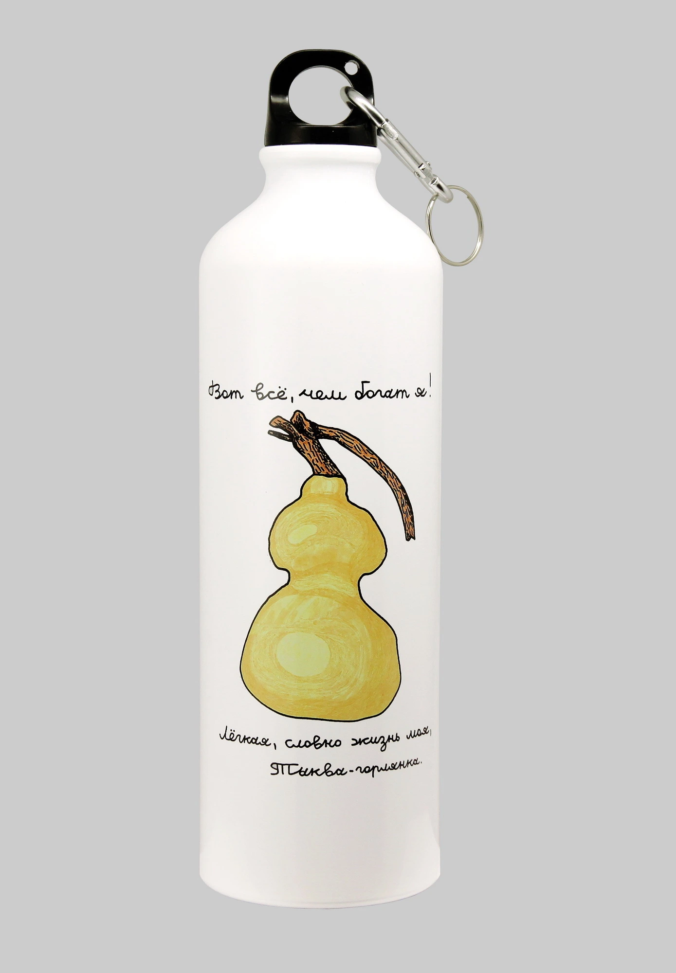 Что должно быть под рукой в походе, на тренировке, за рулем или на прогулке? Конечно же, вода. Наши оригинальные бутылочки из алюминия созданы специально для активных людей, которые ценят комфорт и экологичность. Ведь, в отличие от пластиковых, они не выделяют вредное вещество бисфенол А, их легко мыть и они не впитывают запахи. Изделие сочетает в себе легкий вес, высокую прочность и большую вместительность. С такой бутылочкой контролировать водный баланс легко и просто. Ее объем позволяет отслеживать, сколько необходимой жидкости выпито в течение дня. Бутылочка с уникальным авторским рисунком нашего проекта - полезный и необычный сувенир для любого автомобилиста, туриста или спортсмена. Карабин для подвешивания в комплекте.