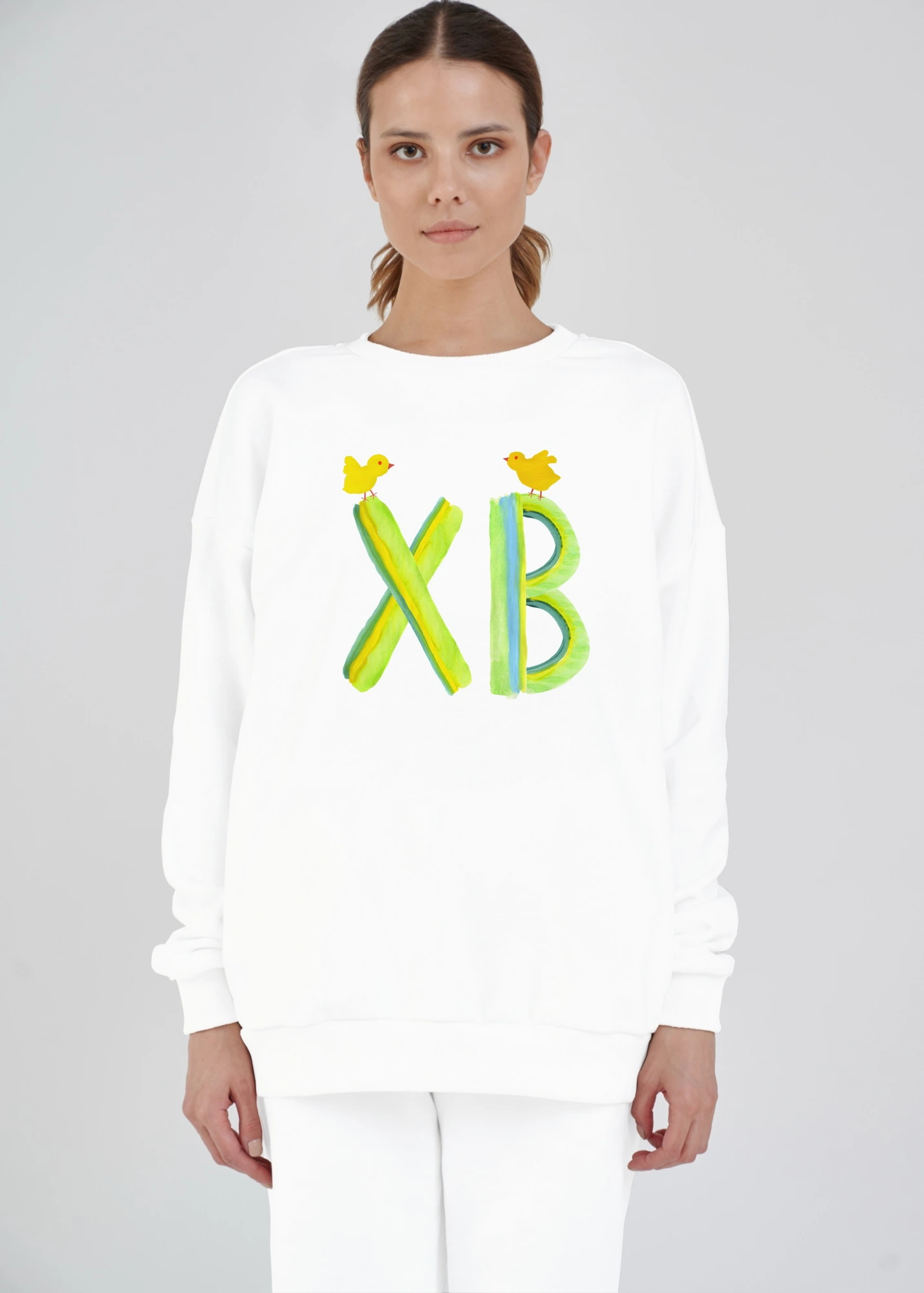 Параметры моделей на фото - 92-65-95 рост 175 см. На ней свитшот размера S (46) и 85-62-89 рост 174 см. На ней свитшот размера XS (44).