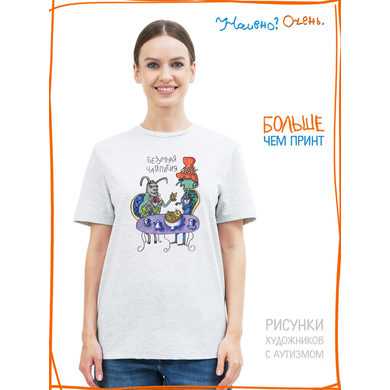Футболка с рисунком нашего социального проекта - хороший подарок со смыслом. Наши футболки дарят тепло, радость и хорошее настроение. Этот проект создан для социализации и трудоустройства молодых людей с аутизмом и другими особенностями развития ментального характера. Творчество для таких людей - мостик в наш мир, возможность раскрыть свой потенциал, самореализоваться и зарабатывать. Печатая их рисунки на различной продукции, мы не только монетизируем их труд, но и получаем очень душевные вещи, которыми всегда приятно порадовать себя и близких. Каждая работа, представленная здесь, выполнена с любовью. Покупая эти очаровательные вещи, и даже просто рассказывая о нас, вы поможете сделать мир хоть немного добрее и лучше!
