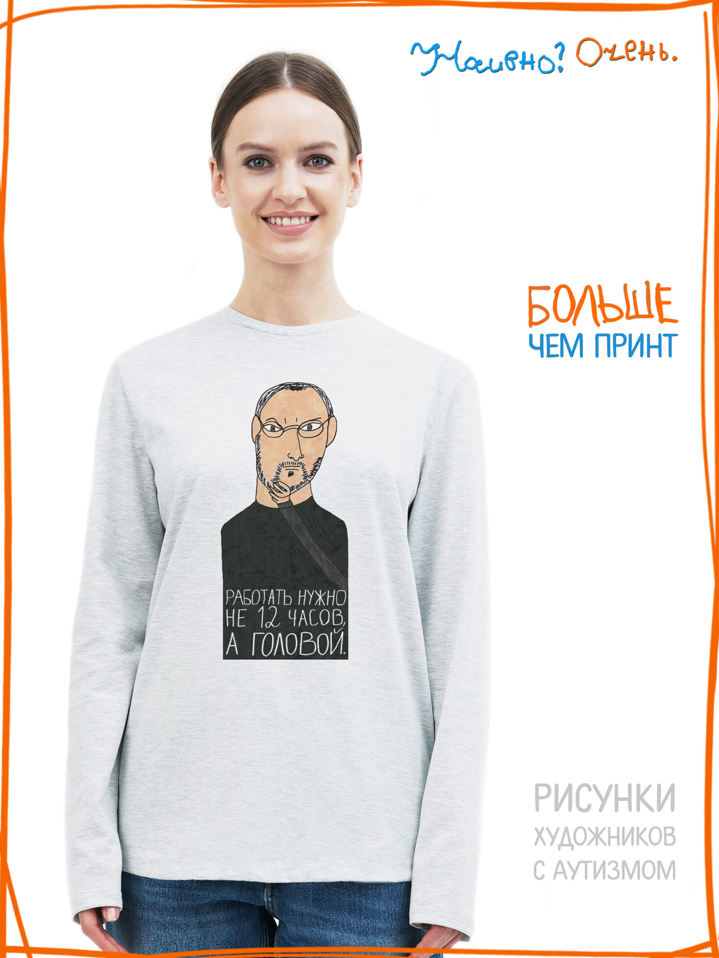 Лонгслив с принтом "Работать нужно не 12 часов, а головой"