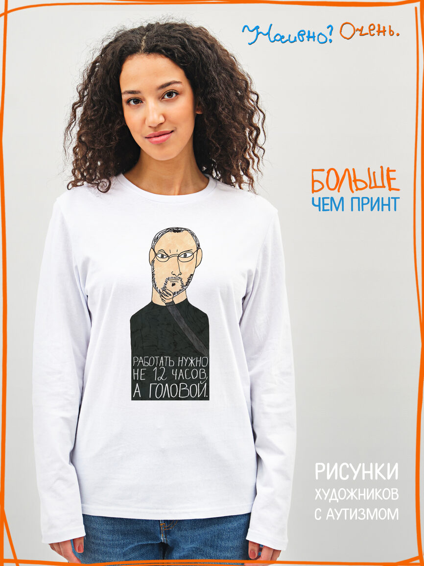 Лонгслив с рисунком нашего социального проекта - хороший подарок со смыслом на любой праздник. Наши вещи дарят тепло, радость и хорошее настроение. Этот проект создан для социализации и трудоустройства молодых людей с аутизмом и другими особенностями развития ментального характера. Творчество для таких людей - мостик в наш мир, возможность раскрыть свой потенциал, самореализоваться и зарабатывать. Печатая их рисунки на различной продукции, мы не только монетизируем их труд, но и получаем очень душевные вещи, которыми всегда приятно порадовать себя и близких. Каждая работа, представленная здесь, выполнена с любовью. Покупая эти очаровательные вещи, и даже просто рассказывая о нас, вы поможете сделать мир хоть немного добрее и лучше!