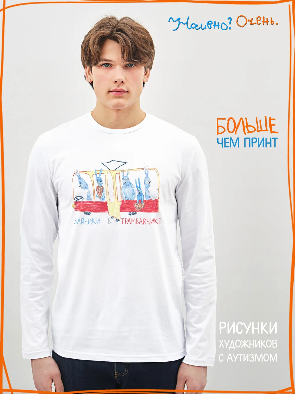 Лонгслив с рисунком нашего социального проекта - хороший подарок со смыслом на любой праздник. Наши вещи дарят тепло, радость и хорошее настроение. Этот проект создан для социализации и трудоустройства молодых людей с аутизмом и другими особенностями развития ментального характера. Творчество для таких людей - мостик в наш мир, возможность раскрыть свой потенциал, самореализоваться и зарабатывать. Печатая их рисунки на различной продукции, мы не только монетизируем их труд, но и получаем очень душевные вещи, которыми всегда приятно порадовать себя и близких. Каждая работа, представленная здесь, выполнена с любовью. Покупая эти очаровательные вещи, и даже просто рассказывая о нас, вы поможете сделать мир хоть немного добрее и лучше!