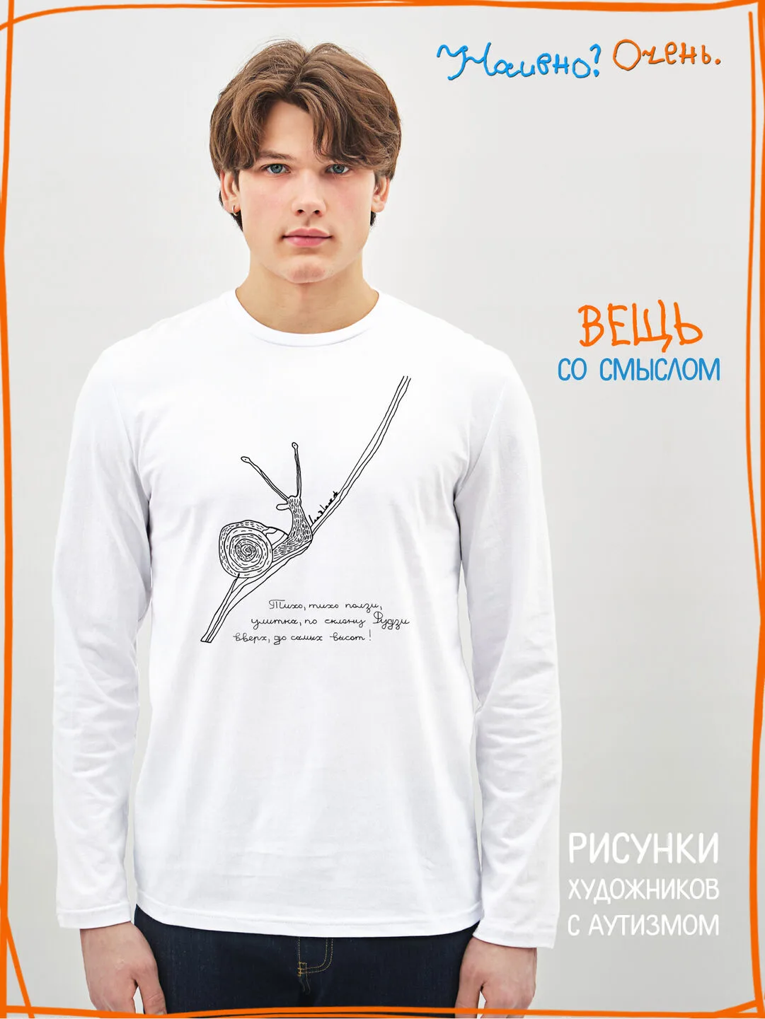 Лонгслив с рисунком нашего социального проекта - хороший подарок со смыслом на любой праздник. Наши вещи дарят тепло, радость и хорошее настроение. Этот проект создан для социализации и трудоустройства молодых людей с аутизмом и другими особенностями развития ментального характера. Творчество для таких людей - мостик в наш мир, возможность раскрыть свой потенциал, самореализоваться и зарабатывать. Печатая их рисунки на различной продукции, мы не только монетизируем их труд, но и получаем очень душевные вещи, которыми всегда приятно порадовать себя и близких. Каждая работа, представленная здесь, выполнена с любовью. Покупая эти очаровательные вещи, и даже просто рассказывая о нас, вы поможете сделать мир хоть немного добрее и лучше!
