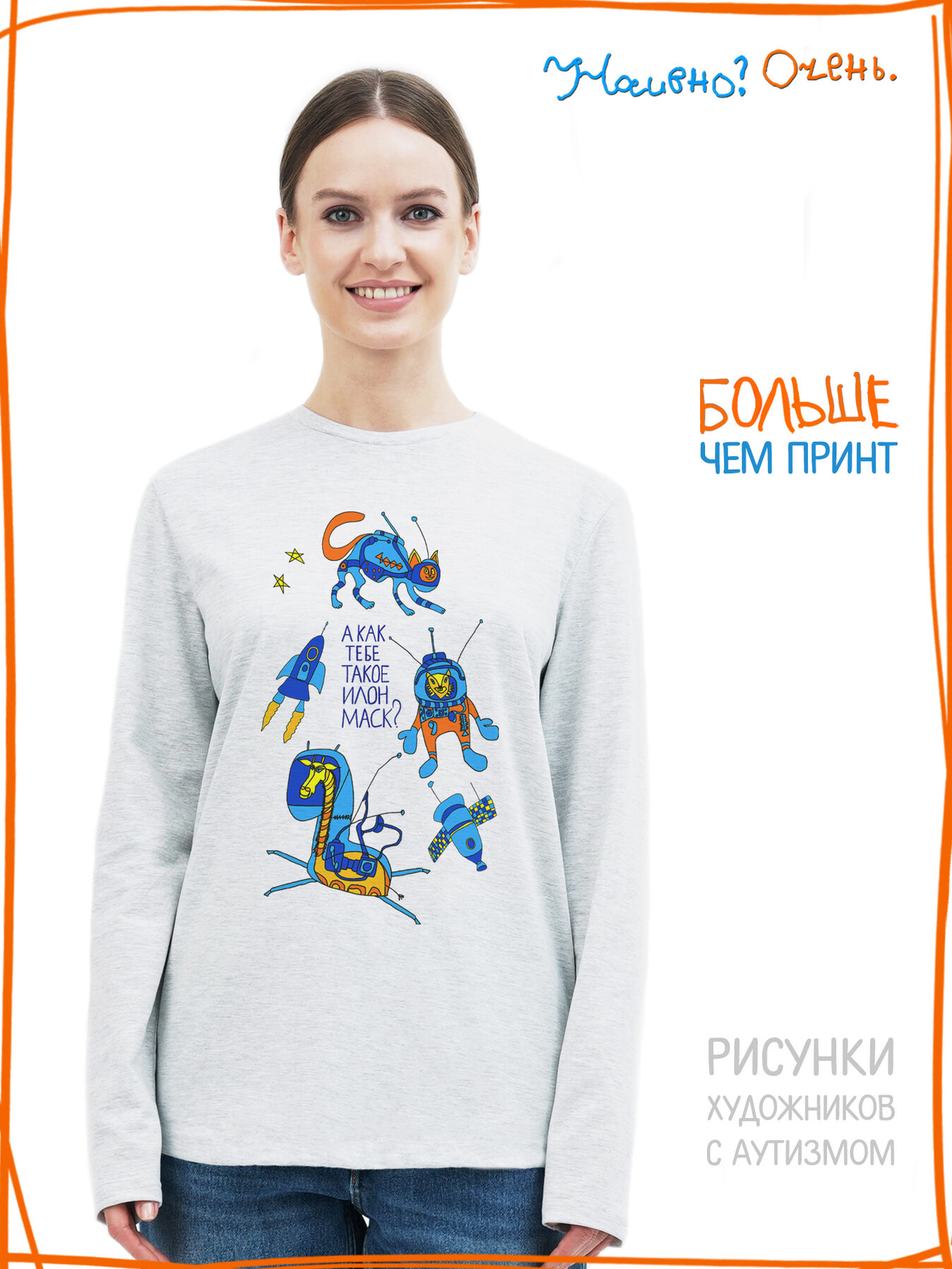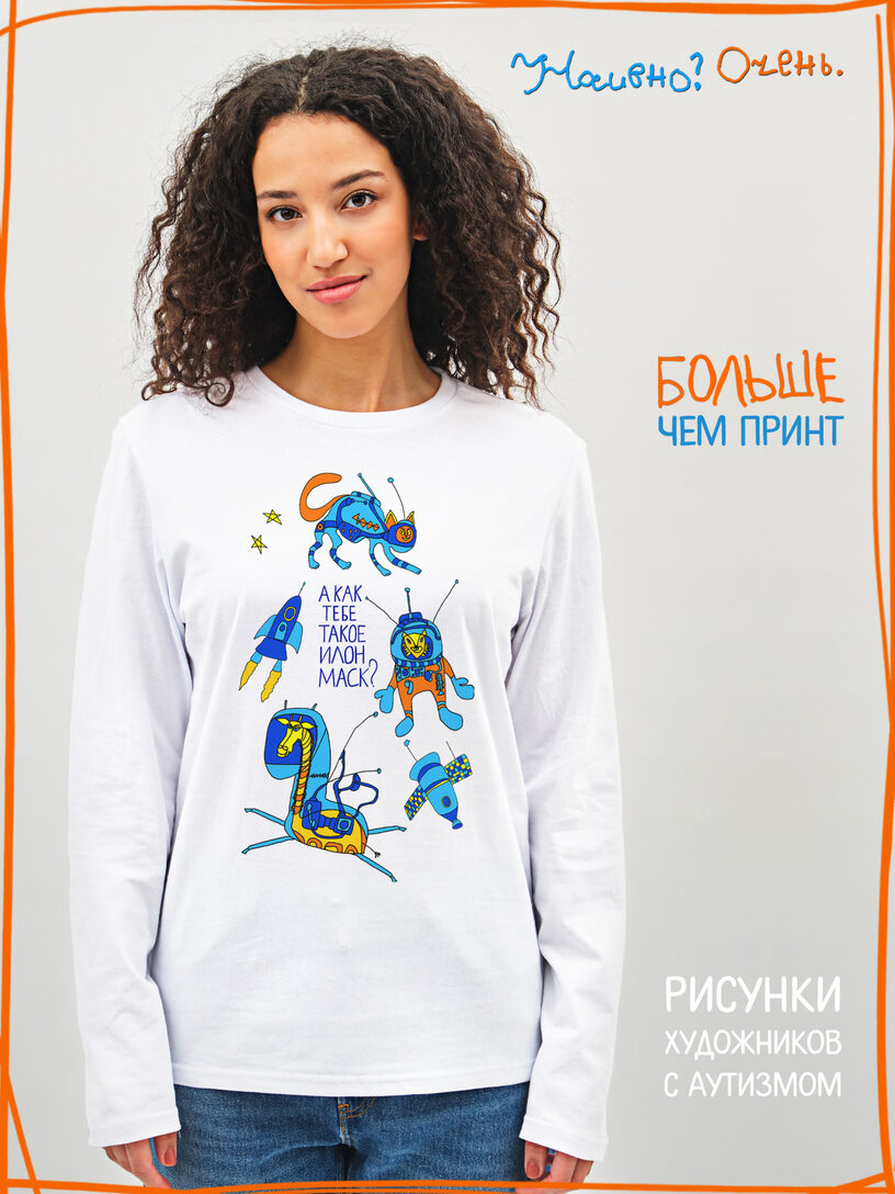 Лонгслив с рисунком нашего социального проекта - хороший подарок со смыслом на любой праздник. Наши вещи дарят тепло, радость и хорошее настроение. Этот проект создан для социализации и трудоустройства молодых людей с аутизмом и другими особенностями развития ментального характера. Творчество для таких людей - мостик в наш мир, возможность раскрыть свой потенциал, самореализоваться и зарабатывать. Печатая их рисунки на различной продукции, мы не только монетизируем их труд, но и получаем очень душевные вещи, которыми всегда приятно порадовать себя и близких. Каждая работа, представленная здесь, выполнена с любовью. Покупая эти очаровательные вещи, и даже просто рассказывая о нас, вы поможете сделать мир хоть немного добрее и лучше!