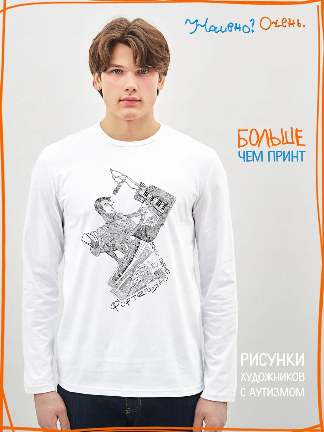 Лонгслив с рисунком нашего социального проекта - хороший подарок со смыслом на любой праздник. Наши вещи дарят тепло, радость и хорошее настроение. Этот проект создан для социализации и трудоустройства молодых людей с аутизмом и другими особенностями развития ментального характера. Творчество для таких людей - мостик в наш мир, возможность раскрыть свой потенциал, самореализоваться и зарабатывать. Печатая их рисунки на различной продукции, мы не только монетизируем их труд, но и получаем очень душевные вещи, которыми всегда приятно порадовать себя и близких. Каждая работа, представленная здесь, выполнена с любовью. Покупая эти очаровательные вещи, и даже просто рассказывая о нас, вы поможете сделать мир хоть немного добрее и лучше!