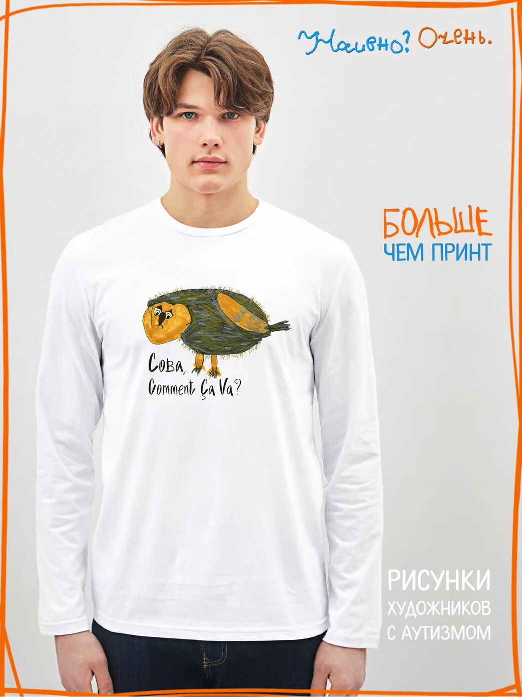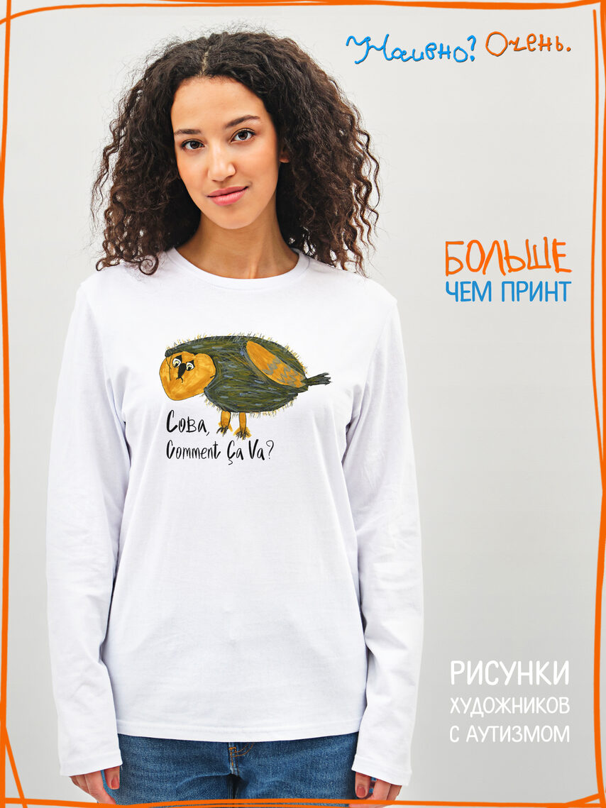 Лонгслив с рисунком нашего социального проекта - хороший подарок со смыслом на любой праздник. Наши вещи дарят тепло, радость и хорошее настроение. Этот проект создан для социализации и трудоустройства молодых людей с аутизмом и другими особенностями развития ментального характера. Творчество для таких людей - мостик в наш мир, возможность раскрыть свой потенциал, самореализоваться и зарабатывать. Печатая их рисунки на различной продукции, мы не только монетизируем их труд, но и получаем очень душевные вещи, которыми всегда приятно порадовать себя и близких. Каждая работа, представленная здесь, выполнена с любовью. Покупая эти очаровательные вещи, и даже просто рассказывая о нас, вы поможете сделать мир хоть немного добрее и лучше!