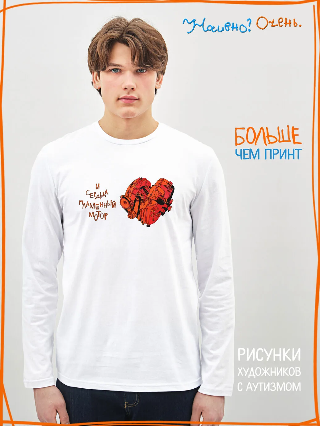 Лонгслив с рисунком нашего социального проекта - хороший подарок со смыслом на любой праздник. Наши вещи дарят тепло, радость и хорошее настроение. Этот проект создан для социализации и трудоустройства молодых людей с аутизмом и другими особенностями развития ментального характера. Творчество для таких людей - мостик в наш мир, возможность раскрыть свой потенциал, самореализоваться и зарабатывать. Печатая их рисунки на различной продукции, мы не только монетизируем их труд, но и получаем очень душевные вещи, которыми всегда приятно порадовать себя и близких. Каждая работа, представленная здесь, выполнена с любовью. Покупая эти очаровательные вещи, и даже просто рассказывая о нас, вы поможете сделать мир хоть немного добрее и лучше!