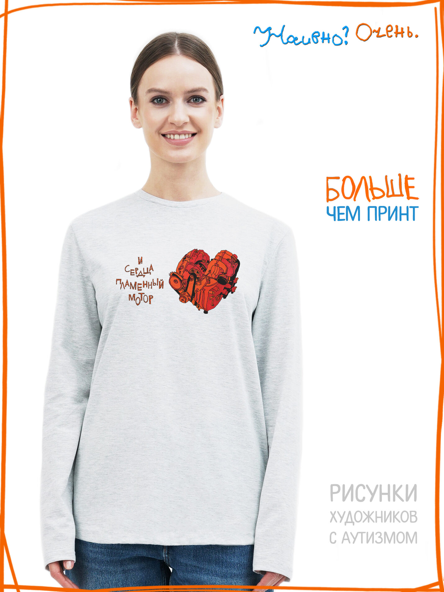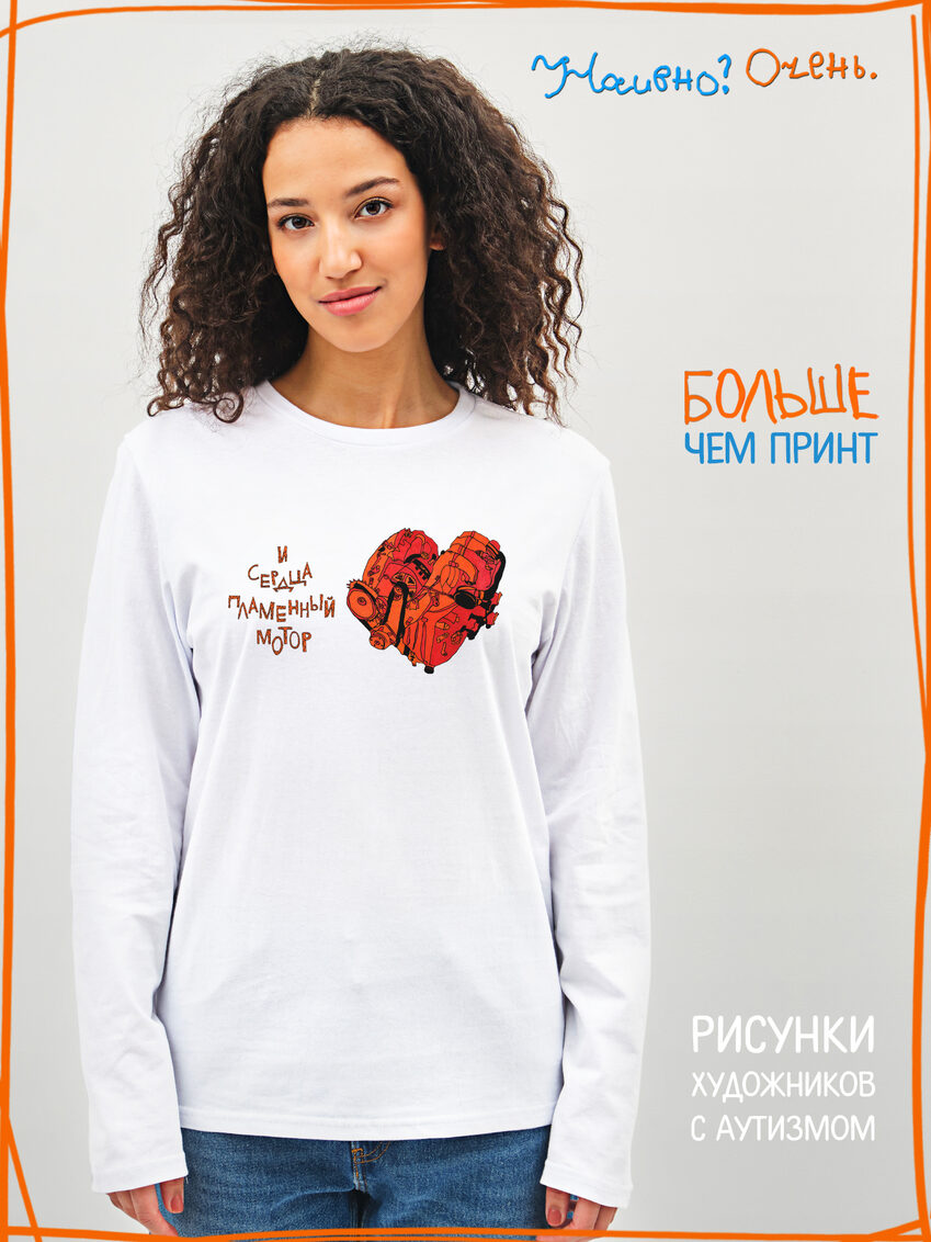 Лонгслив с принтом "Сердца пламенный мотор"