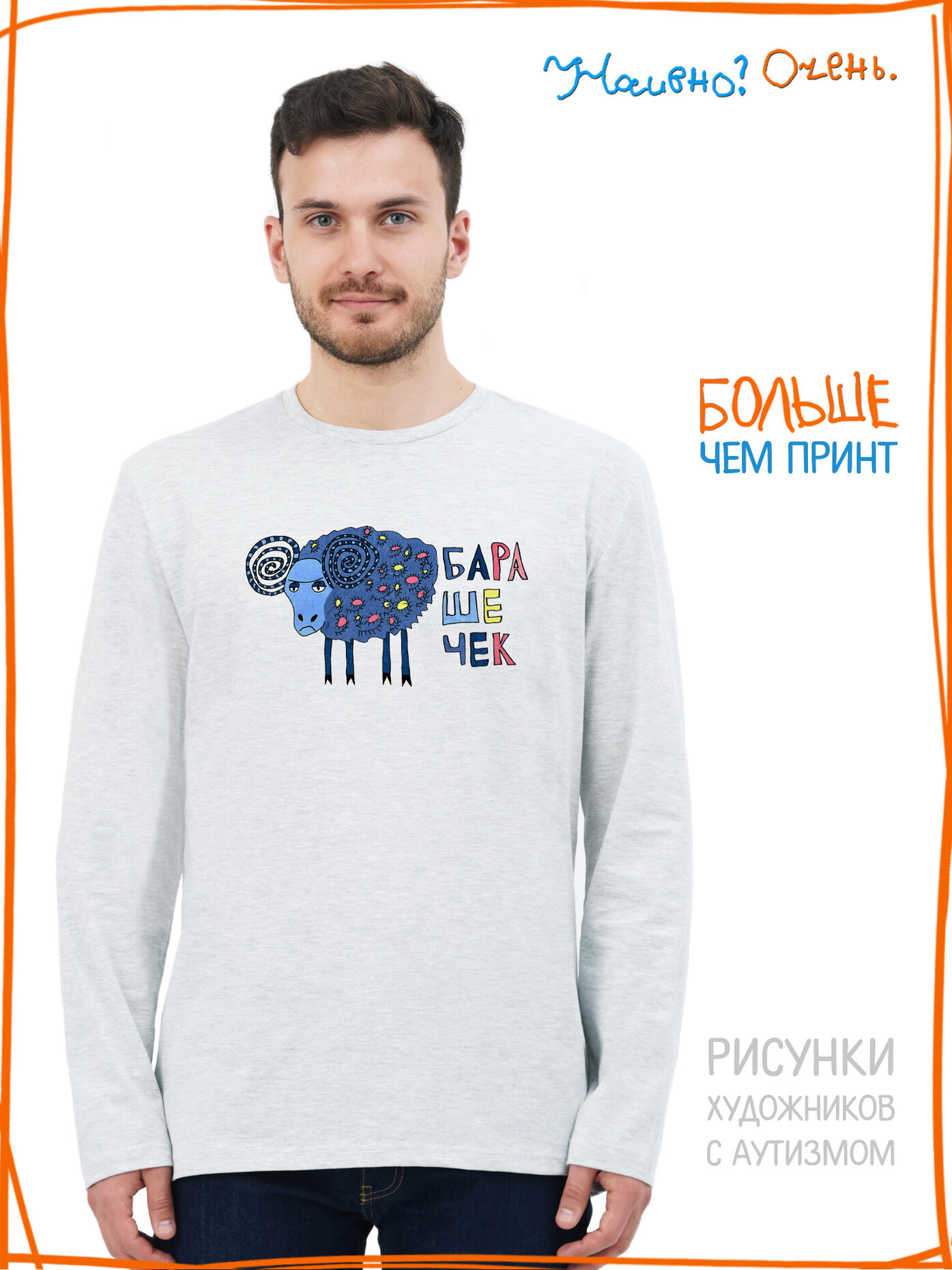 Лонгслив с рисунком нашего социального проекта - хороший подарок со смыслом на любой праздник. Наши вещи дарят тепло, радость и хорошее настроение. Этот проект создан для социализации и трудоустройства молодых людей с аутизмом и другими особенностями развития ментального характера. Творчество для таких людей - мостик в наш мир, возможность раскрыть свой потенциал, самореализоваться и зарабатывать. Печатая их рисунки на различной продукции, мы не только монетизируем их труд, но и получаем очень душевные вещи, которыми всегда приятно порадовать себя и близких. Каждая работа, представленная здесь, выполнена с любовью. Покупая эти очаровательные вещи, и даже просто рассказывая о нас, вы поможете сделать мир хоть немного добрее и лучше!