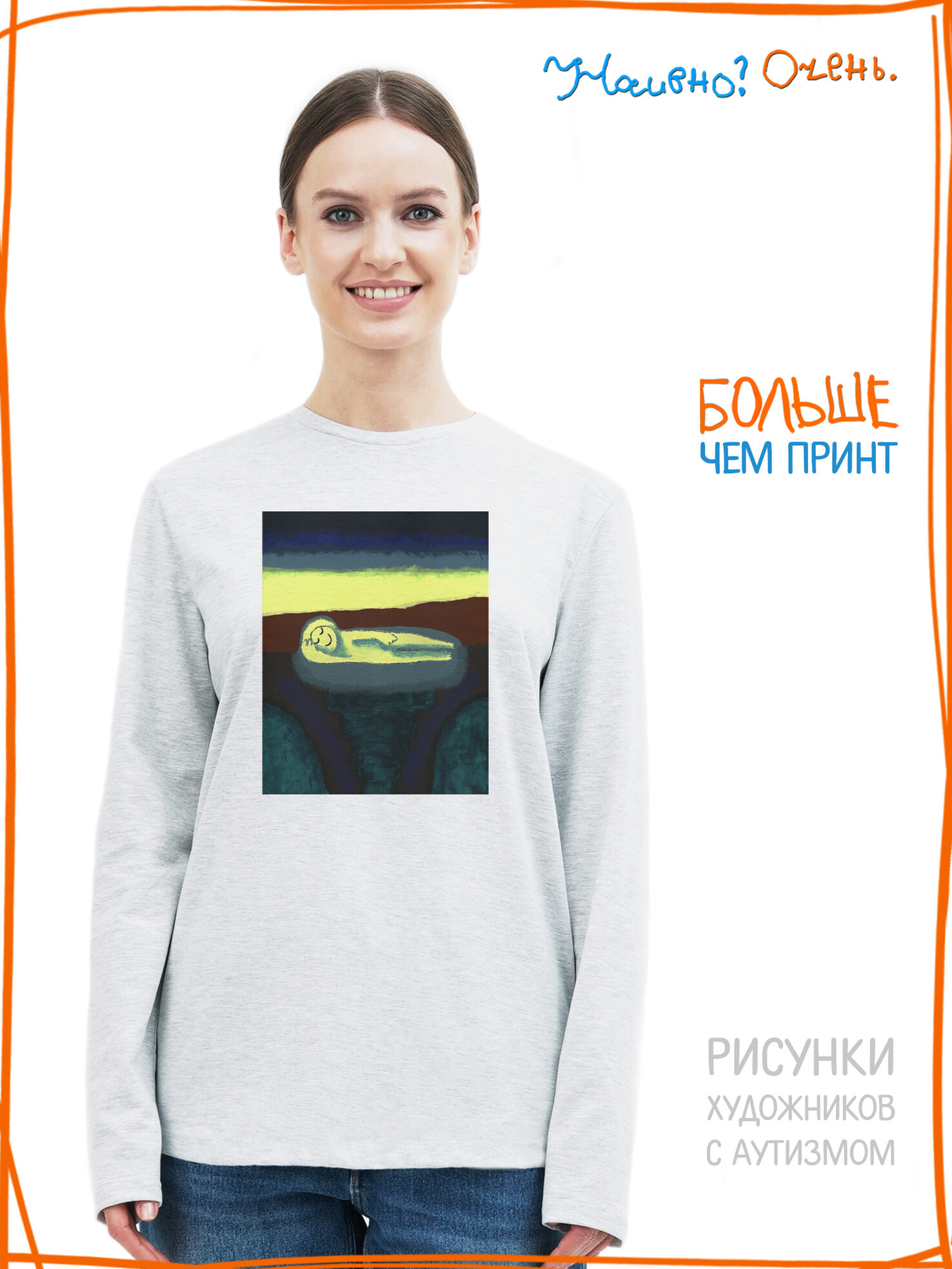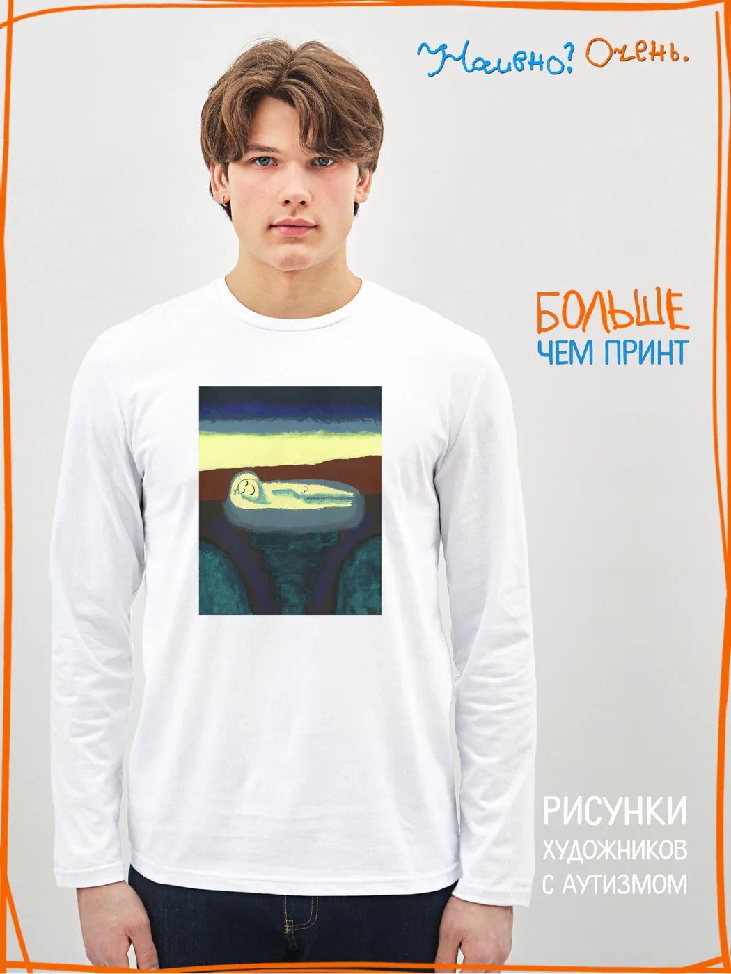 Лонгслив с рисунком нашего социального проекта - хороший подарок со смыслом на любой праздник. Наши вещи дарят тепло, радость и хорошее настроение. Этот проект создан для социализации и трудоустройства молодых людей с аутизмом и другими особенностями развития ментального характера. Творчество для таких людей - мостик в наш мир, возможность раскрыть свой потенциал, самореализоваться и зарабатывать. Печатая их рисунки на различной продукции, мы не только монетизируем их труд, но и получаем очень душевные вещи, которыми всегда приятно порадовать себя и близких. Каждая работа, представленная здесь, выполнена с любовью. Покупая эти очаровательные вещи, и даже просто рассказывая о нас, вы поможете сделать мир хоть немного добрее и лучше!
