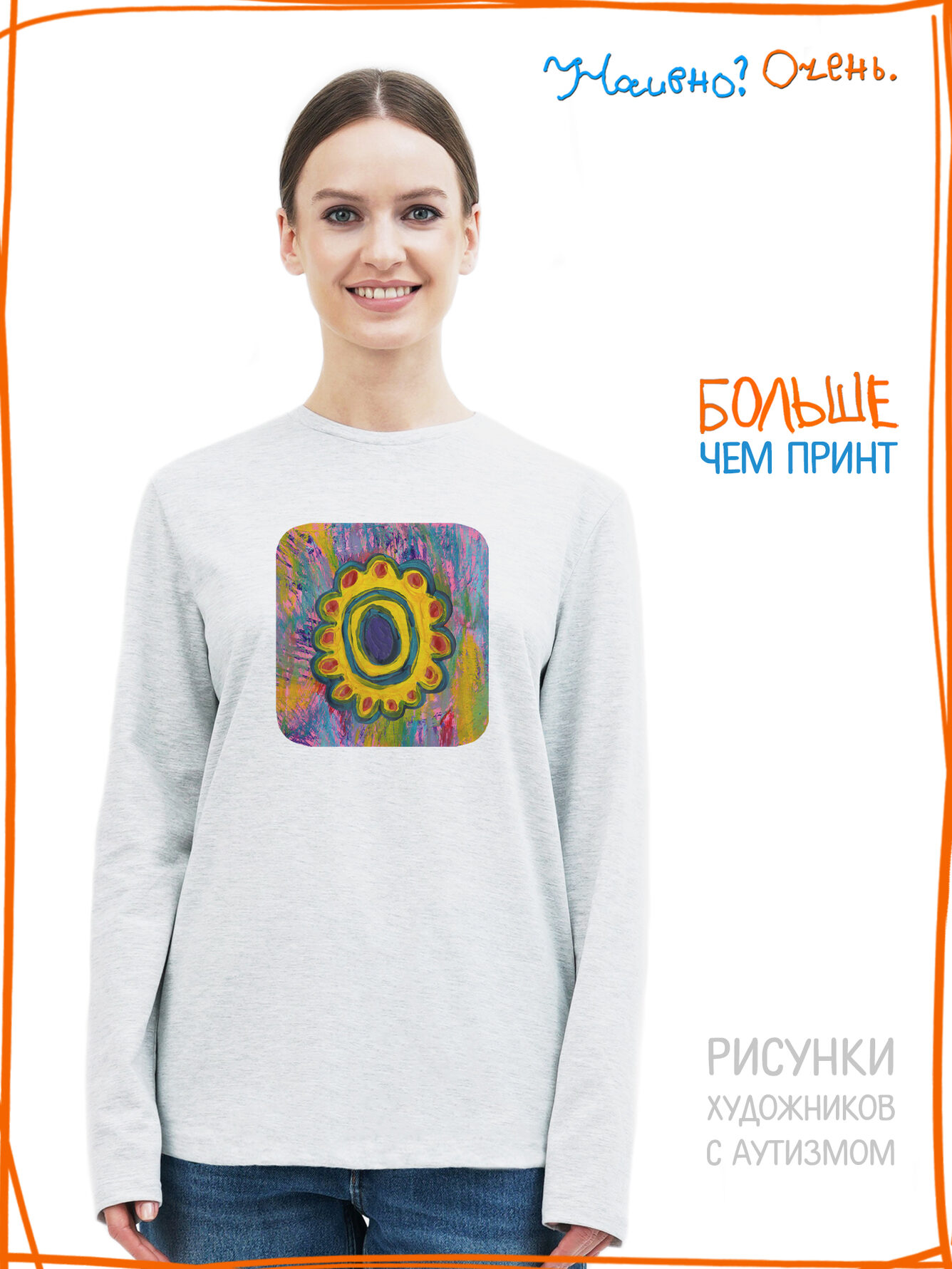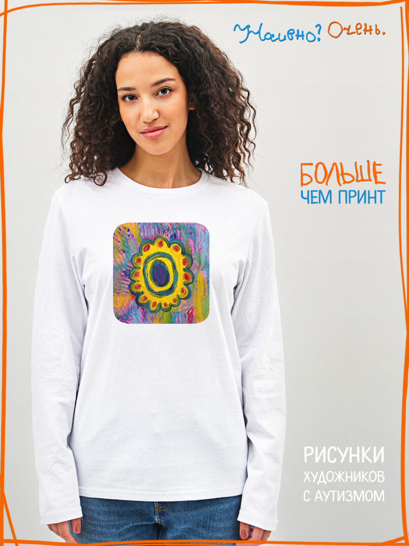 Лонгслив с рисунком нашего социального проекта - хороший подарок со смыслом на любой праздник. Наши вещи дарят тепло, радость и хорошее настроение. Этот проект создан для социализации и трудоустройства молодых людей с аутизмом и другими особенностями развития ментального характера. Творчество для таких людей - мостик в наш мир, возможность раскрыть свой потенциал, самореализоваться и зарабатывать. Печатая их рисунки на различной продукции, мы не только монетизируем их труд, но и получаем очень душевные вещи, которыми всегда приятно порадовать себя и близких. Каждая работа, представленная здесь, выполнена с любовью. Покупая эти очаровательные вещи, и даже просто рассказывая о нас, вы поможете сделать мир хоть немного добрее и лучше!