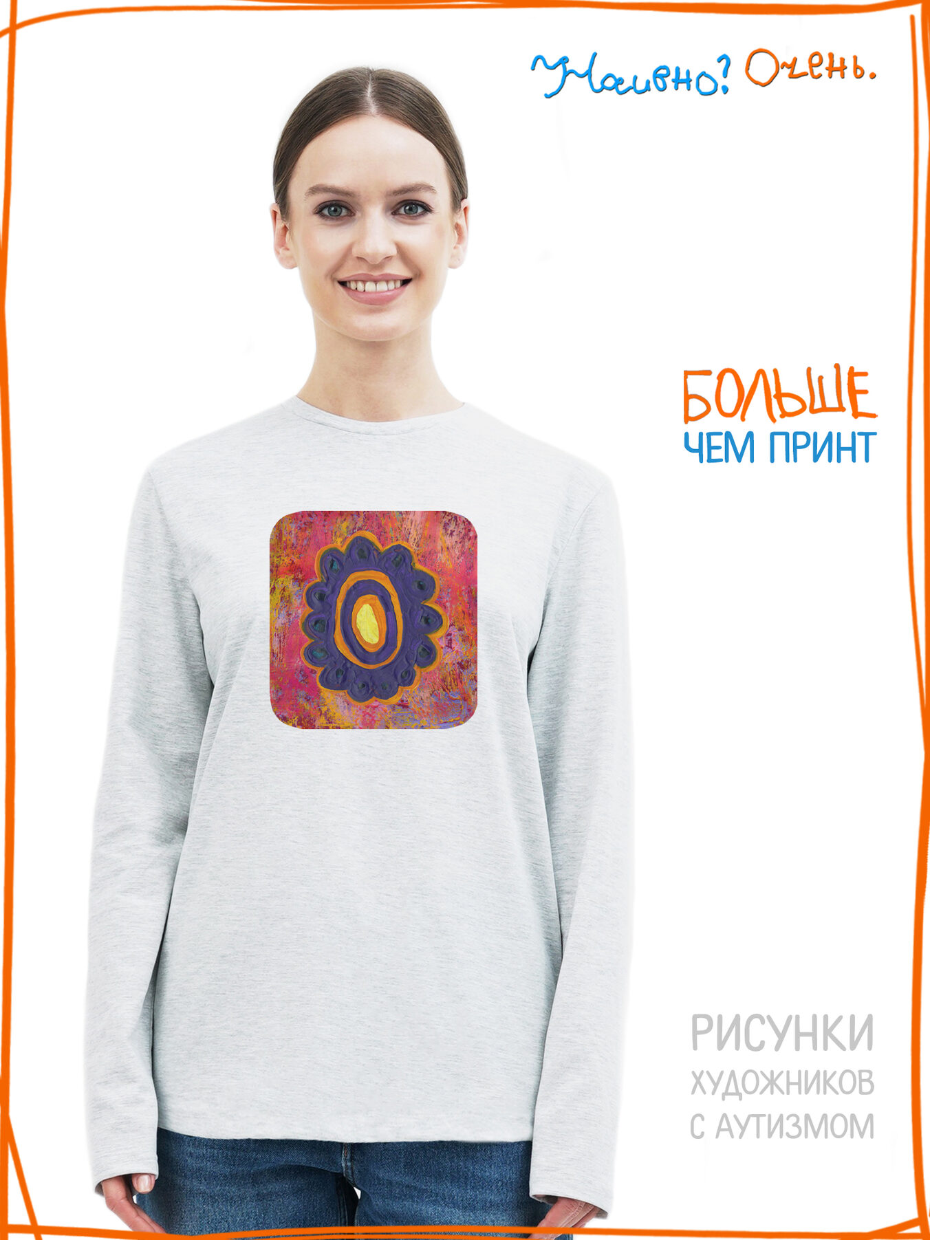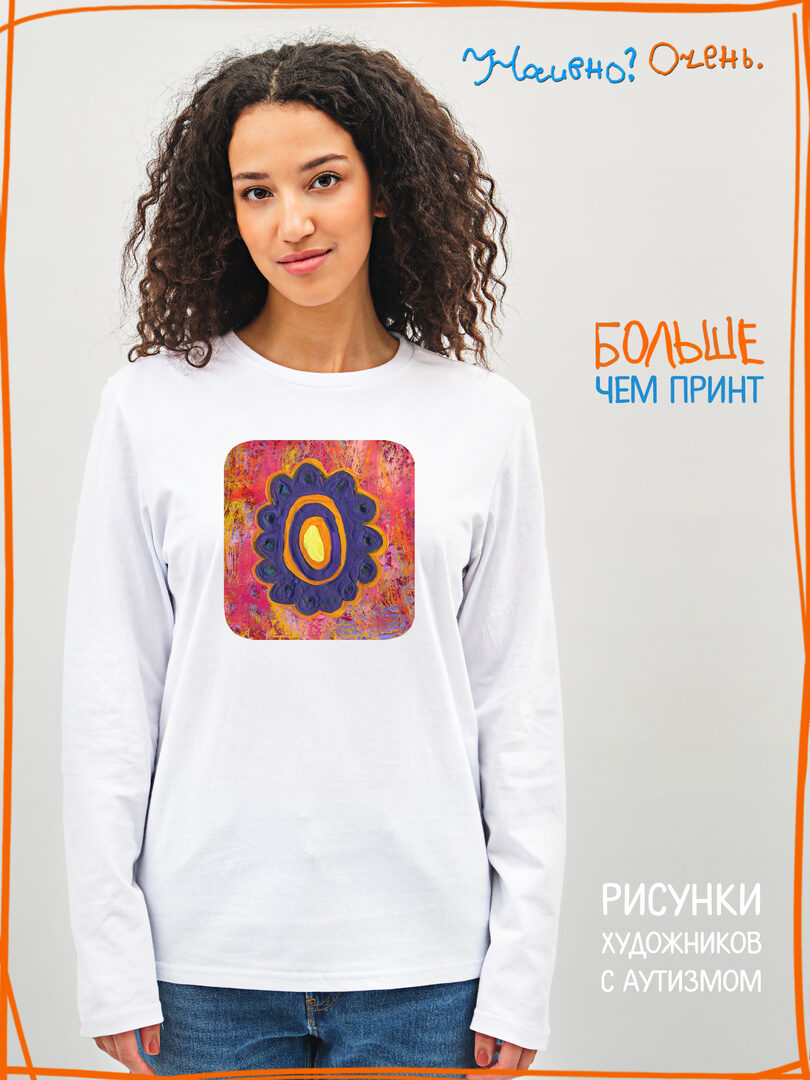 Лонгслив с рисунком нашего социального проекта - хороший подарок со смыслом на любой праздник. Наши вещи дарят тепло, радость и хорошее настроение. Этот проект создан для социализации и трудоустройства молодых людей с аутизмом и другими особенностями развития ментального характера. Творчество для таких людей - мостик в наш мир, возможность раскрыть свой потенциал, самореализоваться и зарабатывать. Печатая их рисунки на различной продукции, мы не только монетизируем их труд, но и получаем очень душевные вещи, которыми всегда приятно порадовать себя и близких. Каждая работа, представленная здесь, выполнена с любовью. Покупая эти очаровательные вещи, и даже просто рассказывая о нас, вы поможете сделать мир хоть немного добрее и лучше!