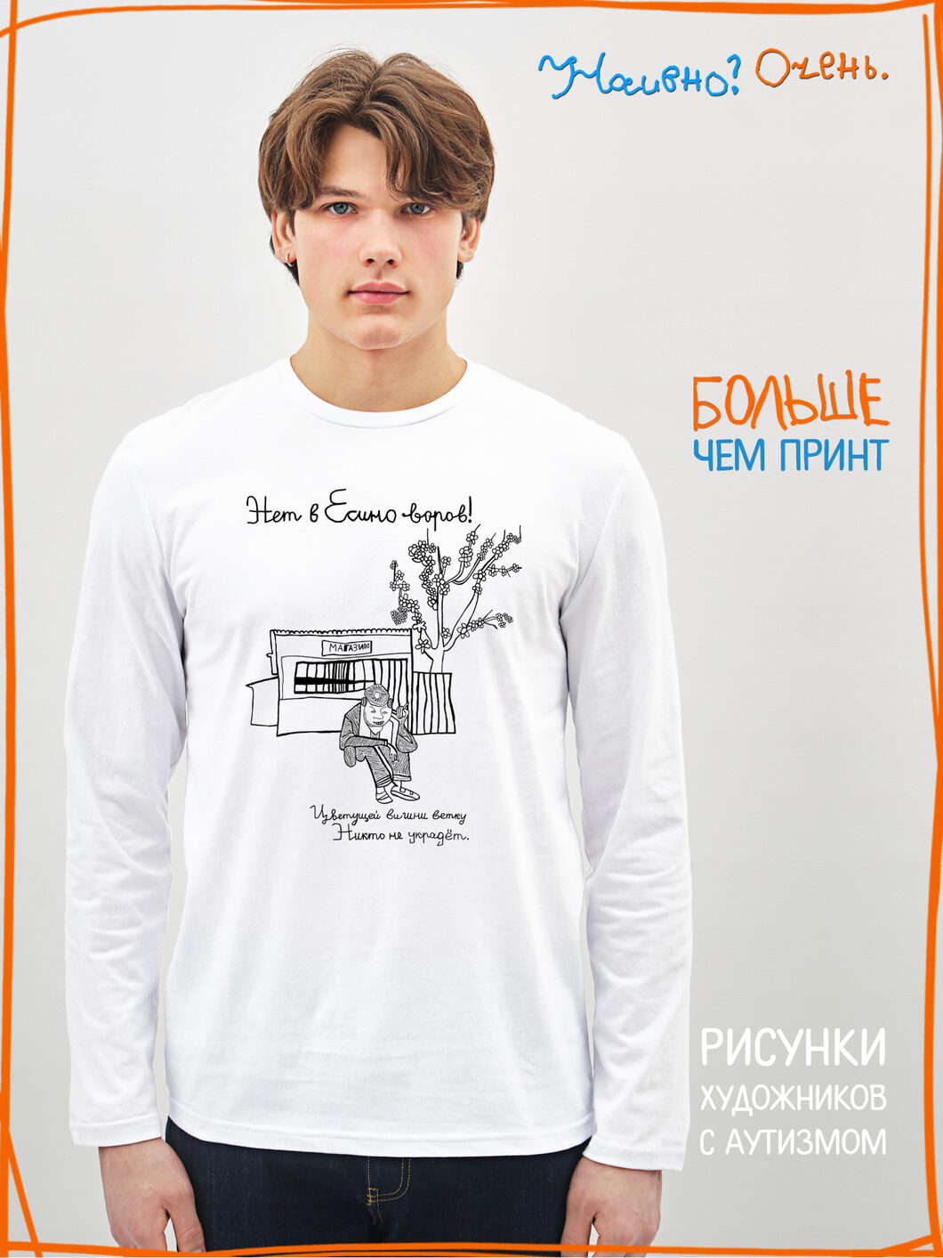 Лонгслив с рисунком нашего социального проекта - хороший подарок со смыслом на любой праздник. Наши вещи дарят тепло, радость и хорошее настроение. Этот проект создан для социализации и трудоустройства молодых людей с аутизмом и другими особенностями развития ментального характера. Творчество для таких людей - мостик в наш мир, возможность раскрыть свой потенциал, самореализоваться и зарабатывать. Печатая их рисунки на различной продукции, мы не только монетизируем их труд, но и получаем очень душевные вещи, которыми всегда приятно порадовать себя и близких. Каждая работа, представленная здесь, выполнена с любовью. Покупая эти очаровательные вещи, и даже просто рассказывая о нас, вы поможете сделать мир хоть немного добрее и лучше!