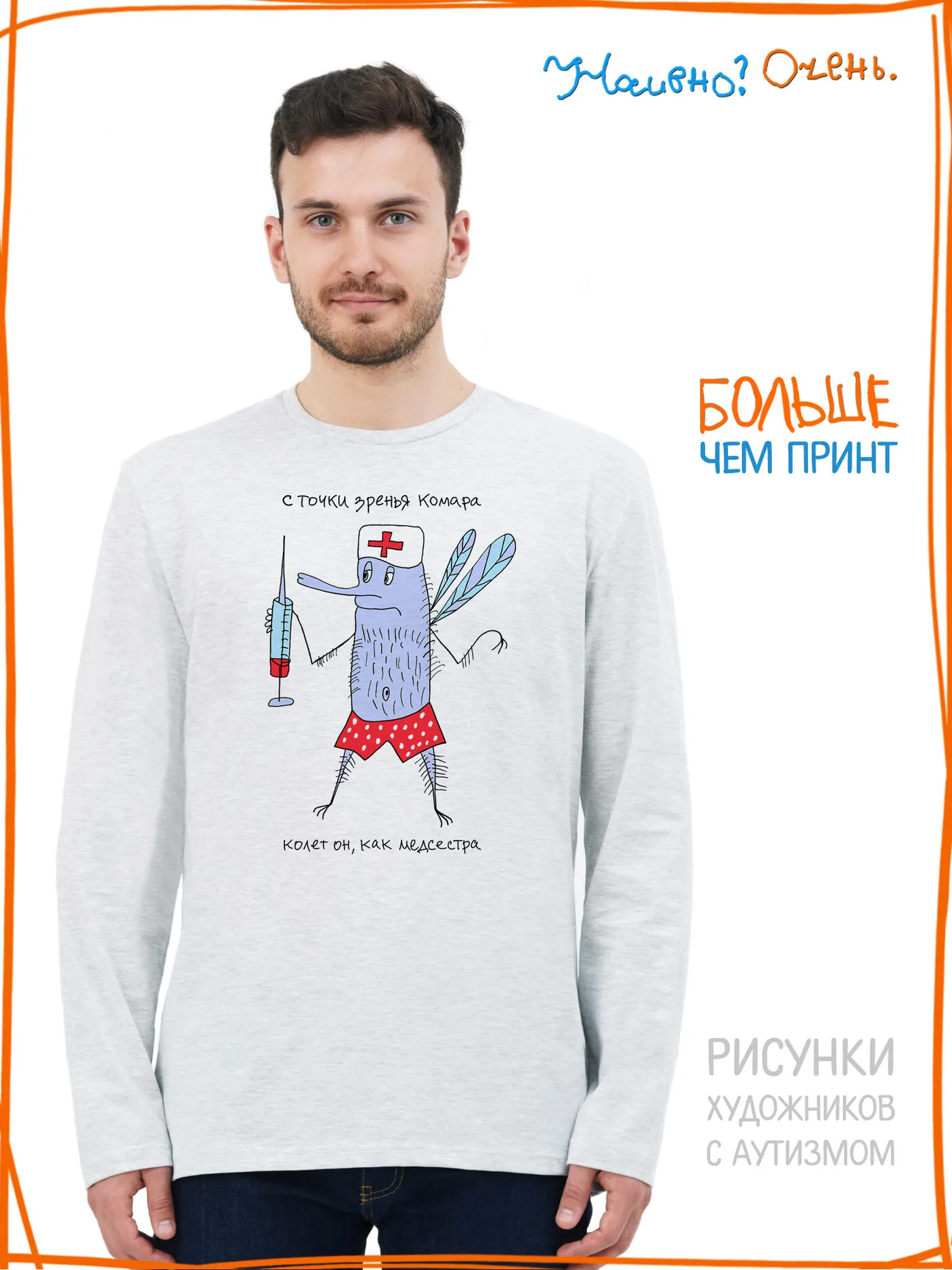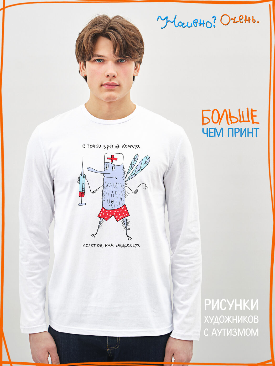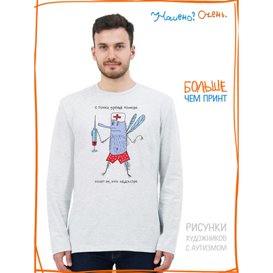 Лонгслив с рисунком нашего социального проекта - хороший подарок со смыслом на любой праздник. Наши вещи дарят тепло, радость и хорошее настроение. Этот проект создан для социализации и трудоустройства молодых людей с аутизмом и другими особенностями развития ментального характера. Творчество для таких людей - мостик в наш мир, возможность раскрыть свой потенциал, самореализоваться и зарабатывать. Печатая их рисунки на различной продукции, мы не только монетизируем их труд, но и получаем очень душевные вещи, которыми всегда приятно порадовать себя и близких. Каждая работа, представленная здесь, выполнена с любовью. Покупая эти очаровательные вещи, и даже просто рассказывая о нас, вы поможете сделать мир хоть немного добрее и лучше!
