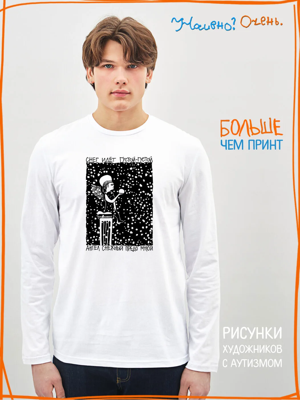 Лонгслив с рисунком нашего социального проекта - хороший подарок со смыслом на любой праздник. Наши вещи дарят тепло, радость и хорошее настроение. Этот проект создан для социализации и трудоустройства молодых людей с аутизмом и другими особенностями развития ментального характера. Творчество для таких людей - мостик в наш мир, возможность раскрыть свой потенциал, самореализоваться и зарабатывать. Печатая их рисунки на различной продукции, мы не только монетизируем их труд, но и получаем очень душевные вещи, которыми всегда приятно порадовать себя и близких. Каждая работа, представленная здесь, выполнена с любовью. Покупая эти очаровательные вещи, и даже просто рассказывая о нас, вы поможете сделать мир хоть немного добрее и лучше!