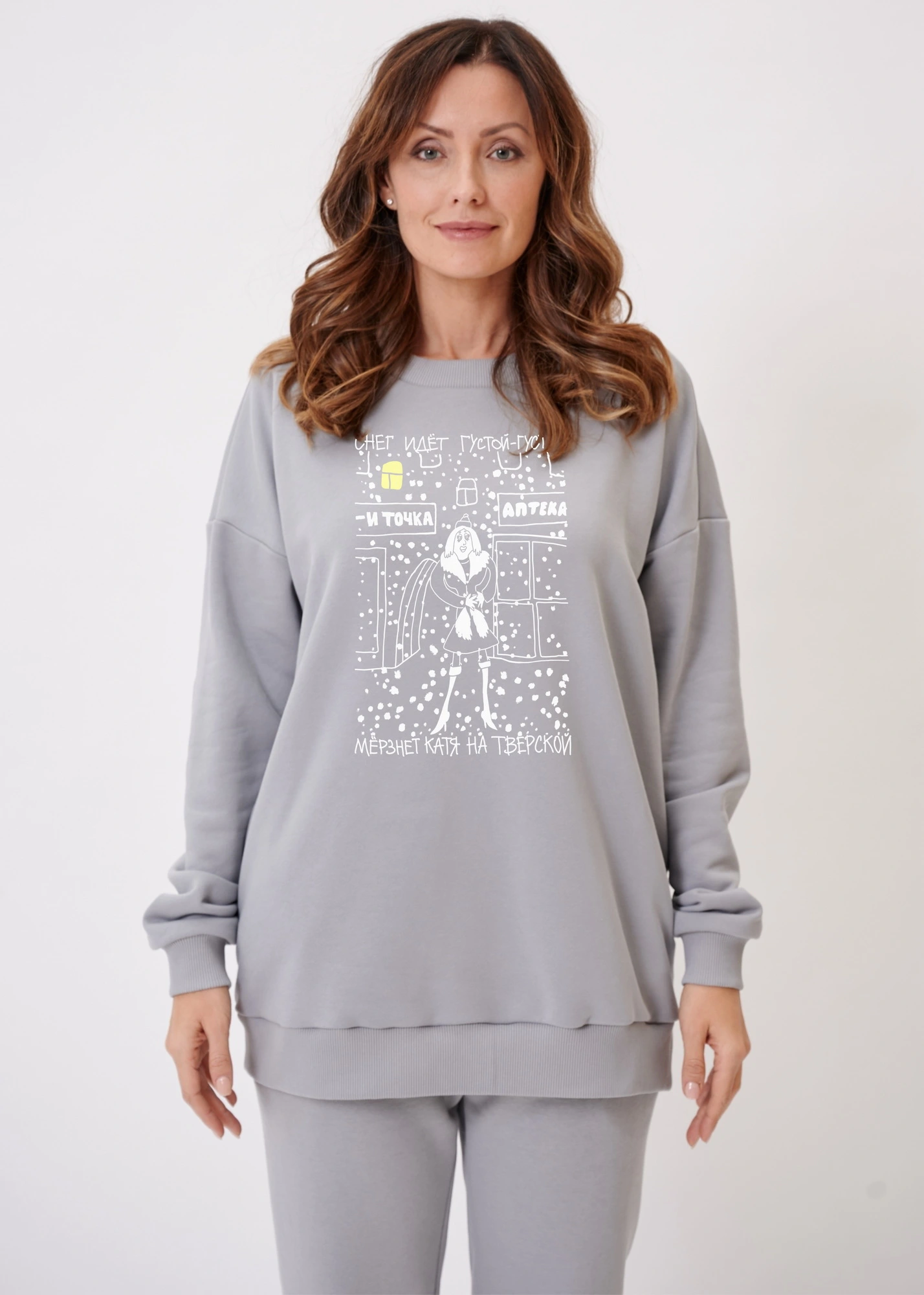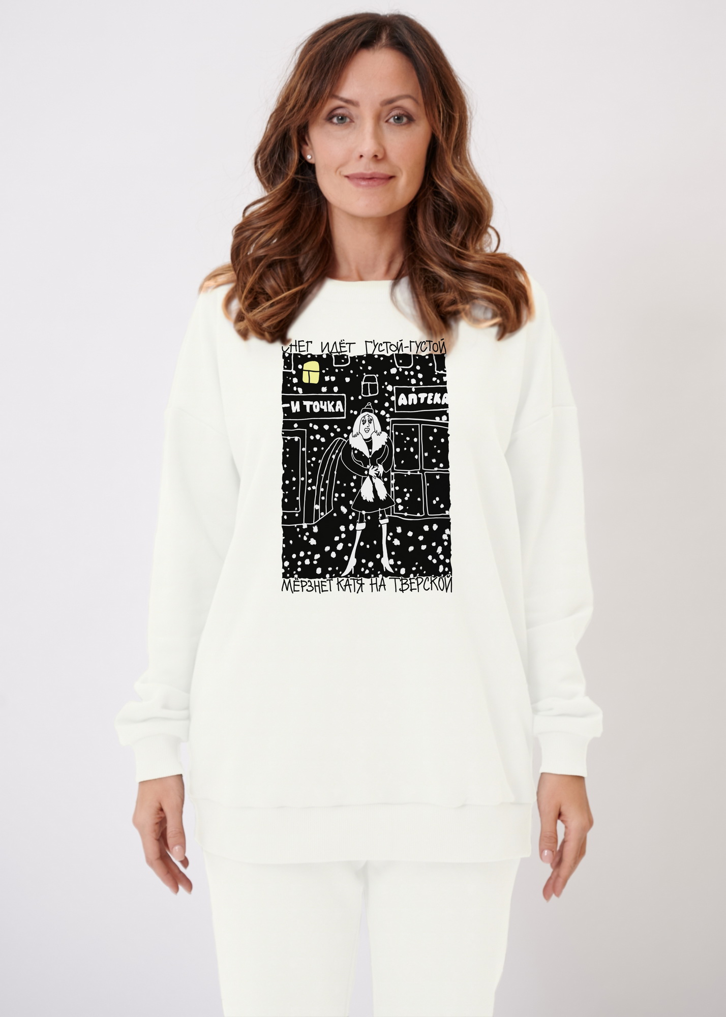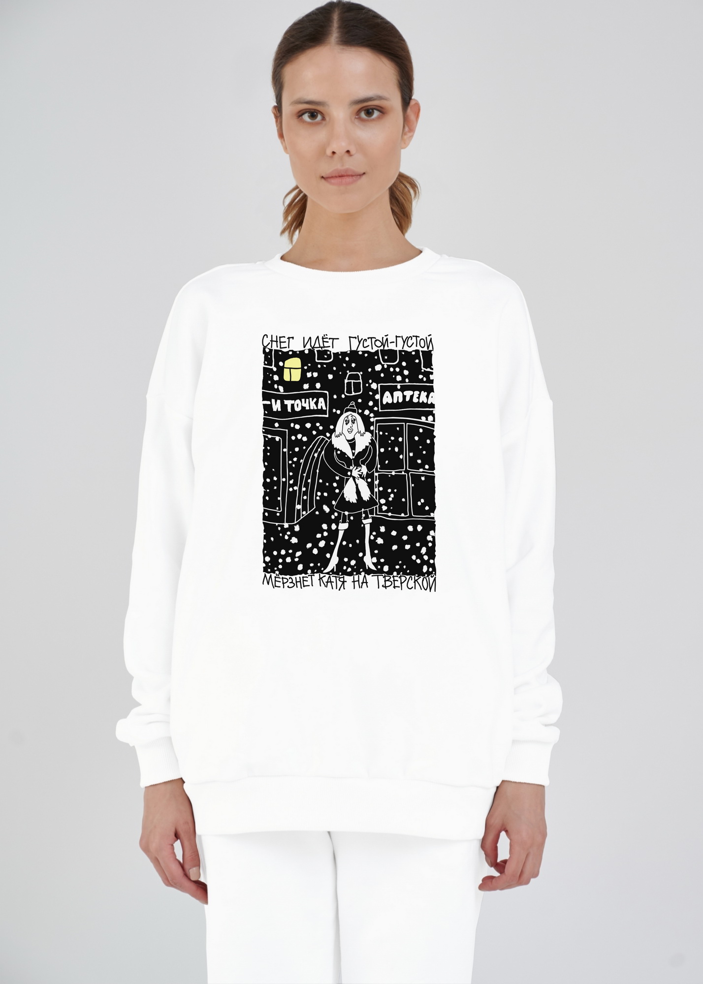 Свитшот оверсайз "Мёрзнет Катя на Тверской"