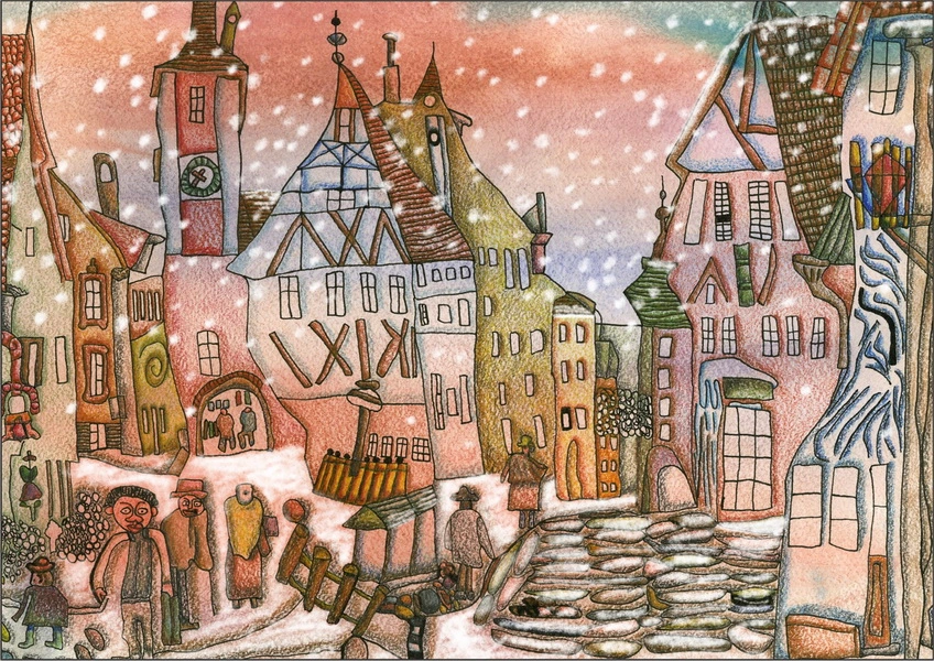 Открытка "Снегопад в старом городе"
