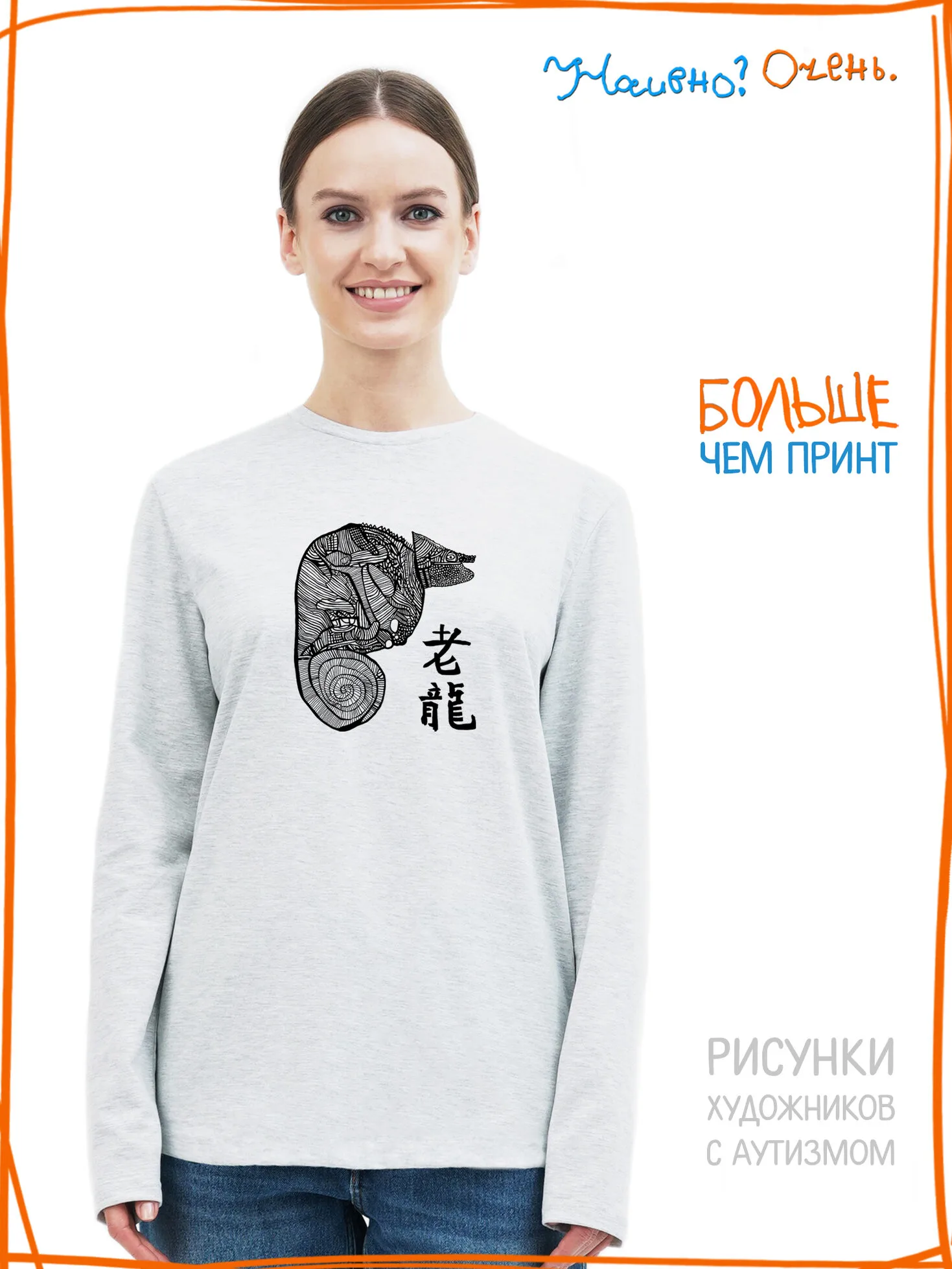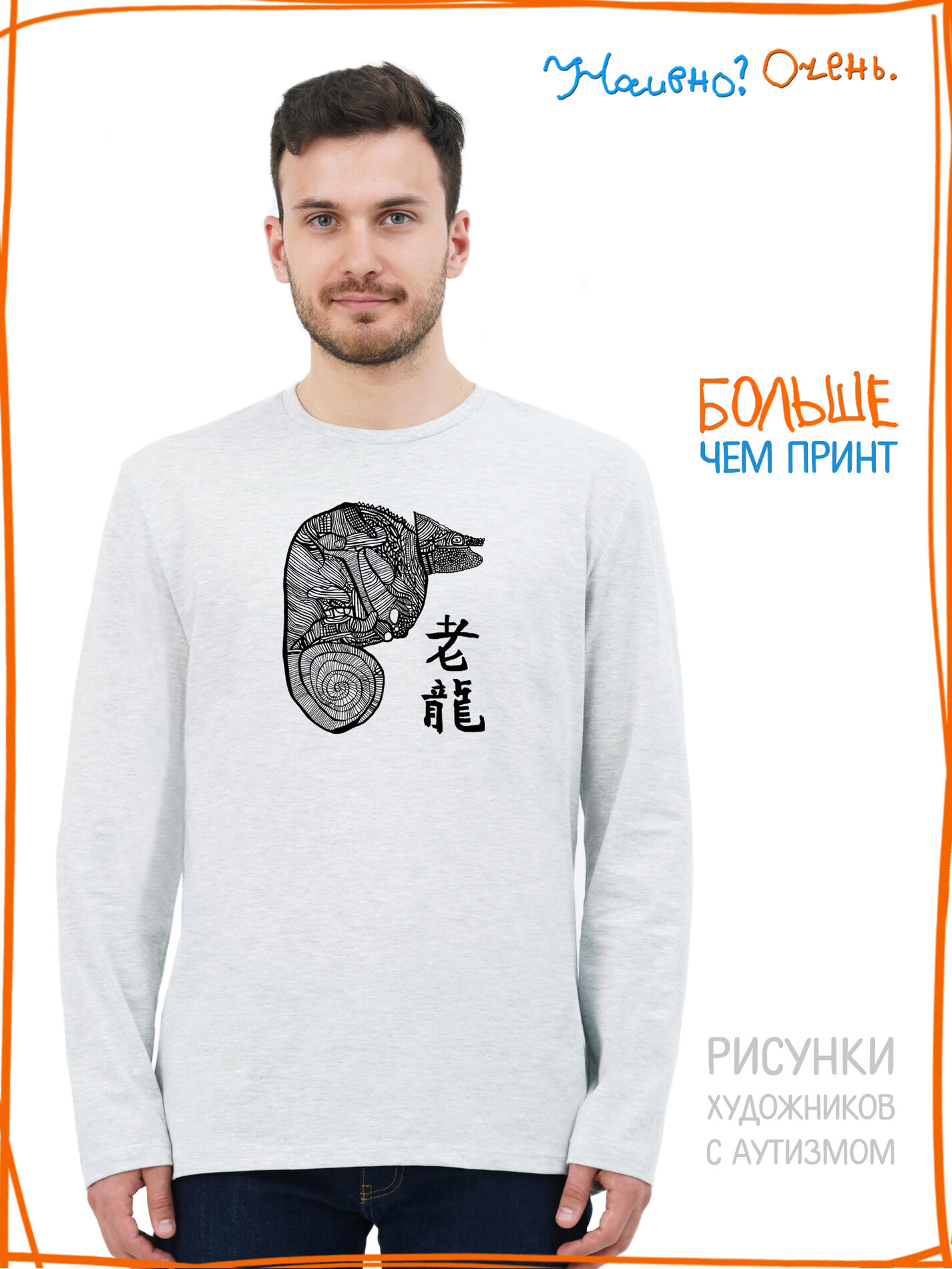 Лонгслив с рисунком нашего социального проекта - хороший подарок со смыслом на любой праздник. Наши вещи дарят тепло, радость и хорошее настроение. Этот проект создан для социализации и трудоустройства молодых людей с аутизмом и другими особенностями развития ментального характера. Творчество для таких людей - мостик в наш мир, возможность раскрыть свой потенциал, самореализоваться и зарабатывать. Печатая их рисунки на различной продукции, мы не только монетизируем их труд, но и получаем очень душевные вещи, которыми всегда приятно порадовать себя и близких. Каждая работа, представленная здесь, выполнена с любовью. Покупая эти очаровательные вещи, и даже просто рассказывая о нас, вы поможете сделать мир хоть немного добрее и лучше!
