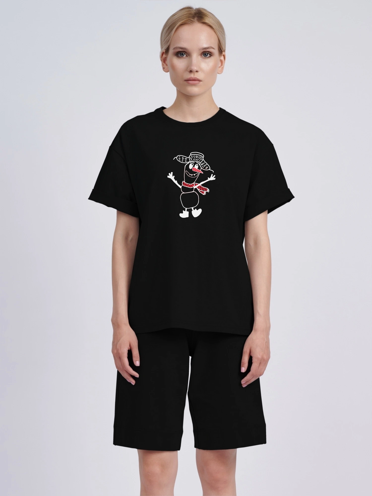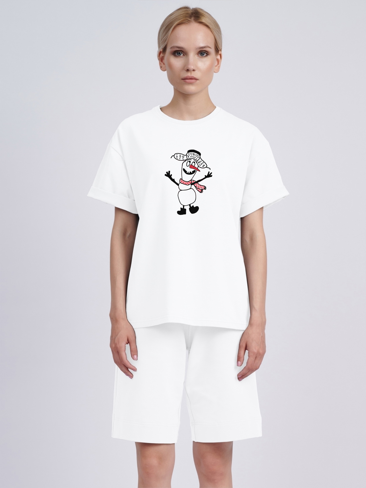 Футболка оверсайз "Снеговик в ушанке"