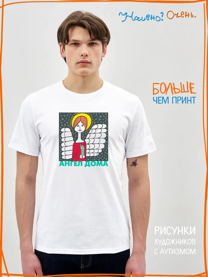 Футболка с рисунком нашего социального проекта - хороший подарок со смыслом. Наши футболки дарят тепло, радость и хорошее настроение. Этот проект создан для социализации и трудоустройства молодых людей с аутизмом и другими особенностями развития ментального характера. Творчество для таких людей - мостик в наш мир, возможность раскрыть свой потенциал, самореализоваться и зарабатывать. Печатая их рисунки на различной продукции, мы не только монетизируем их труд, но и получаем очень душевные вещи, которыми всегда приятно порадовать себя и близких. Каждая работа, представленная здесь, выполнена с любовью. Покупая эти очаровательные вещи, и даже просто рассказывая о нас, вы поможете сделать мир хоть немного добрее и лучше!
