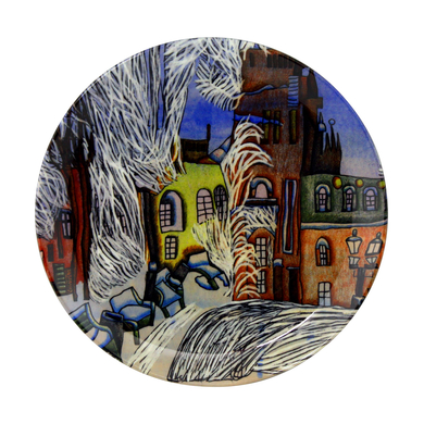 Тарелка керамическая "Скверик в зимний день"