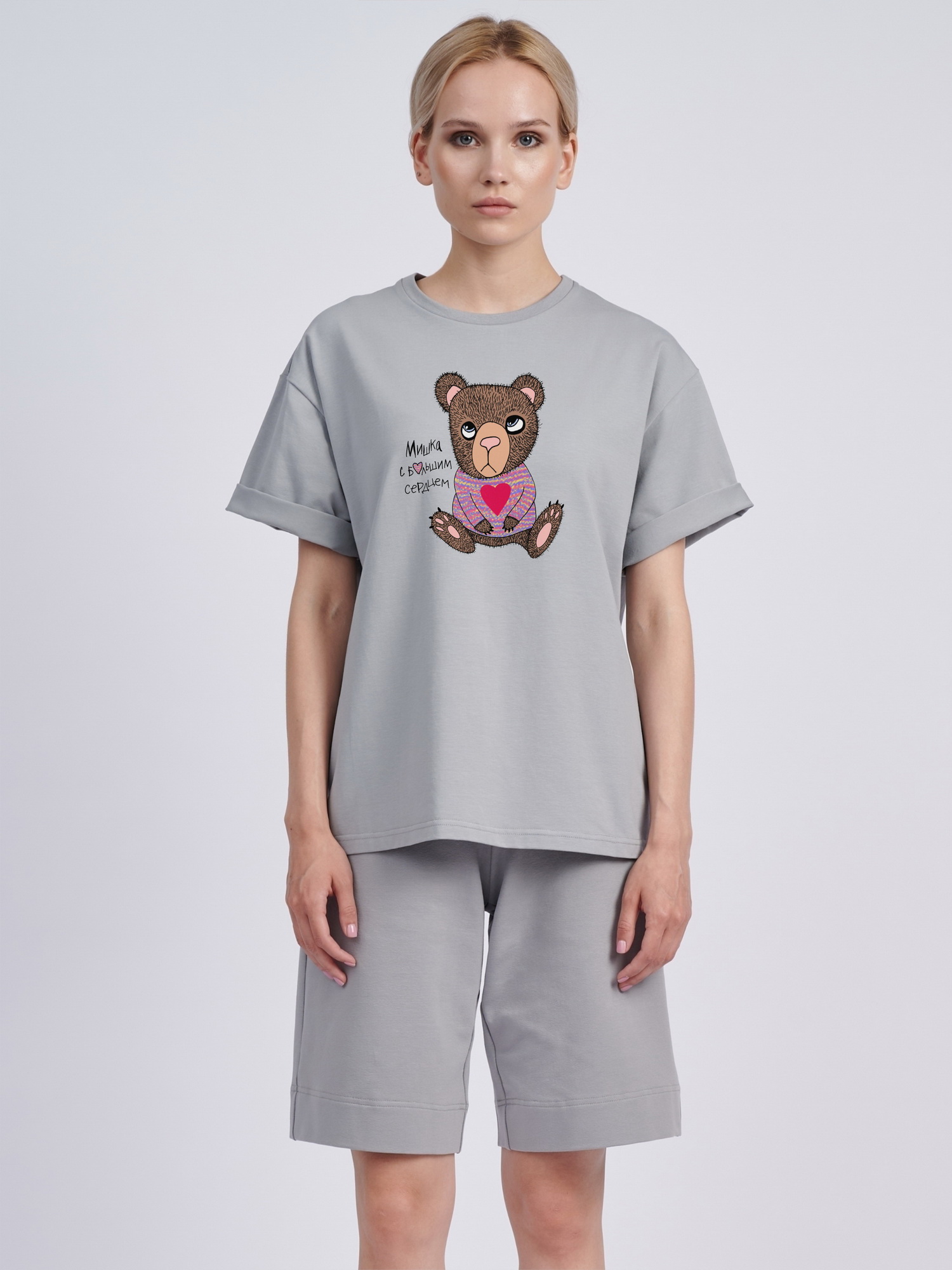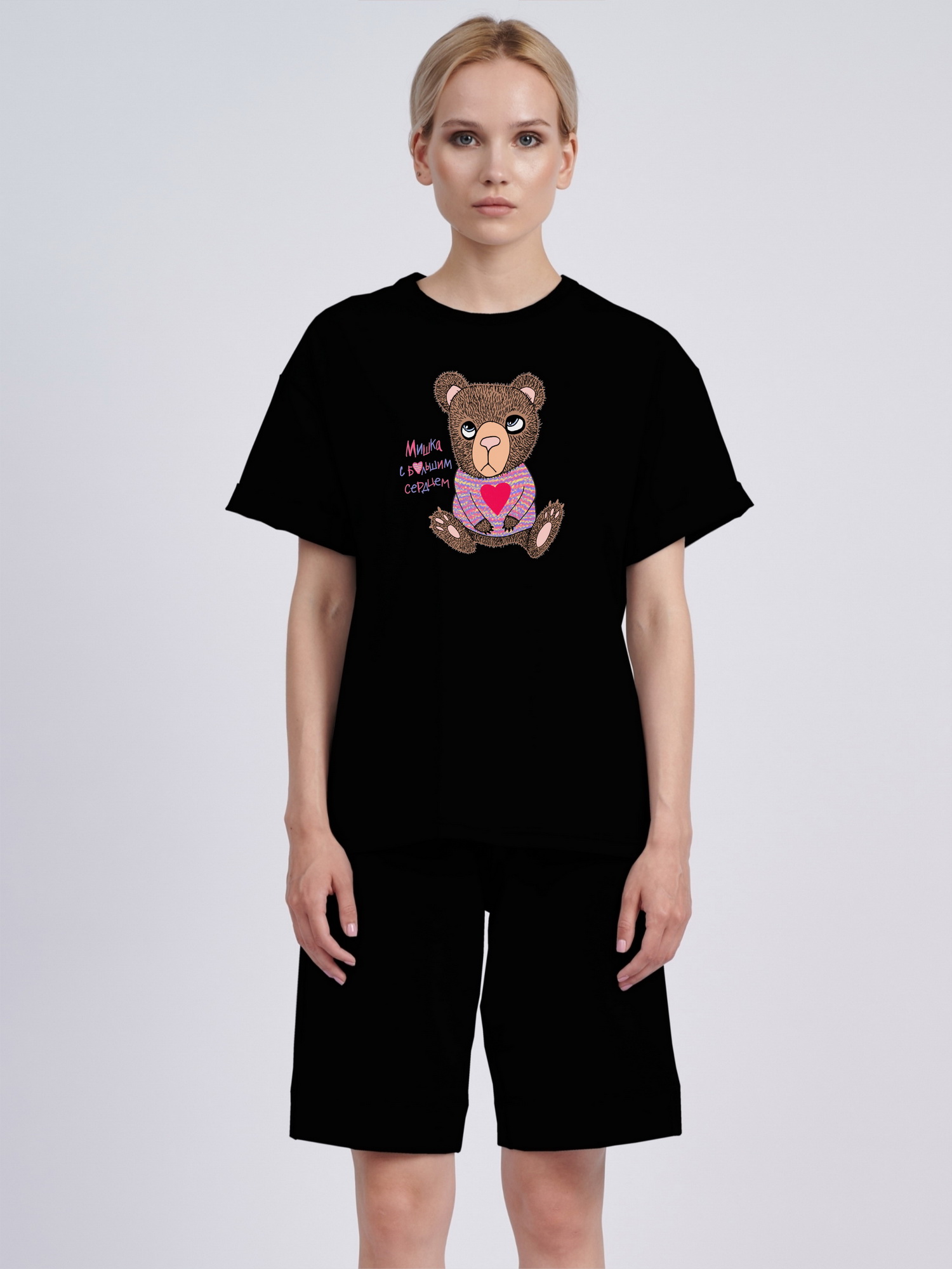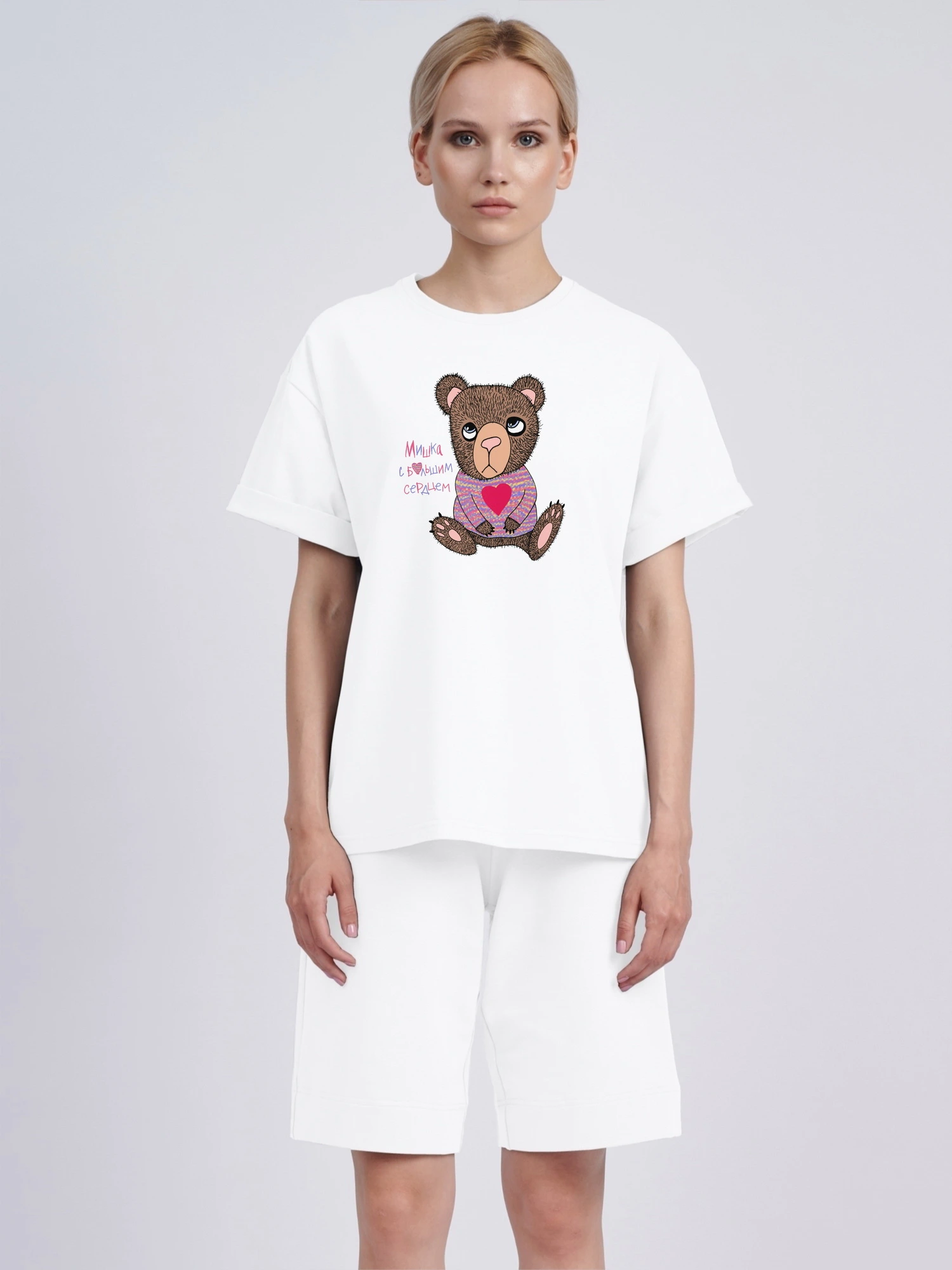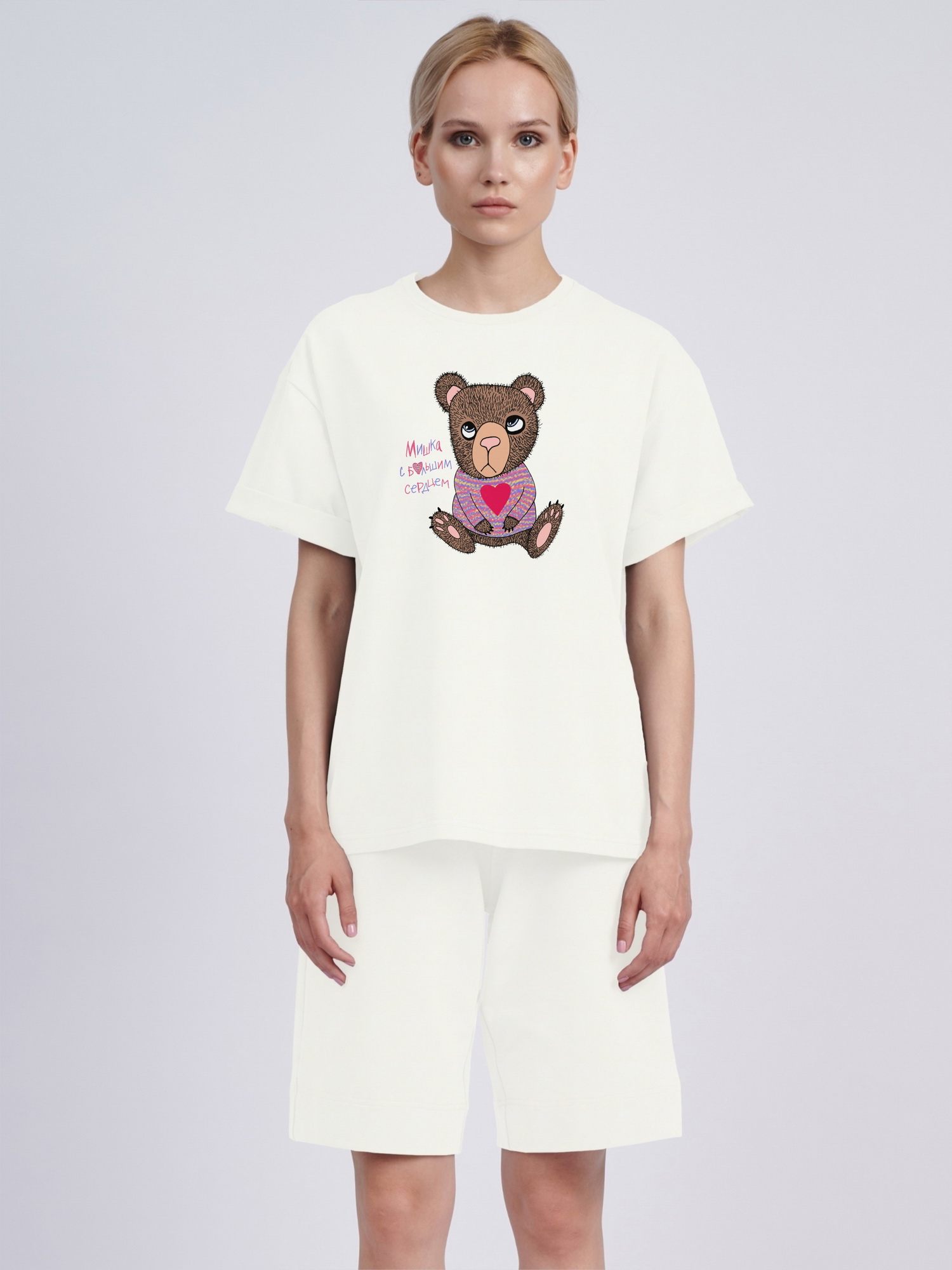 Футболка оверсайз "Мишка с большим сердцем"