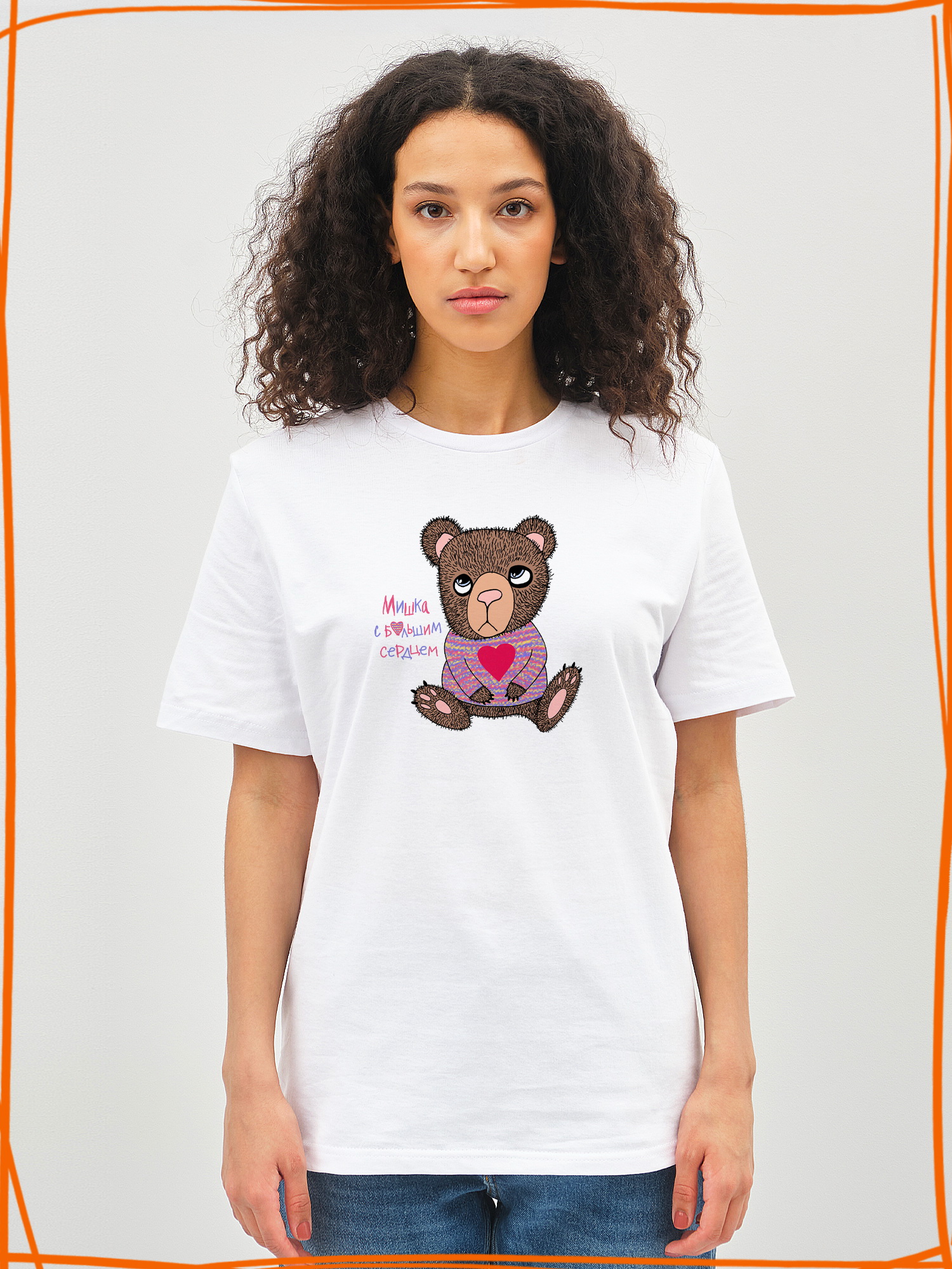 Футболка с принтом "Мишка с большим сердцем"
