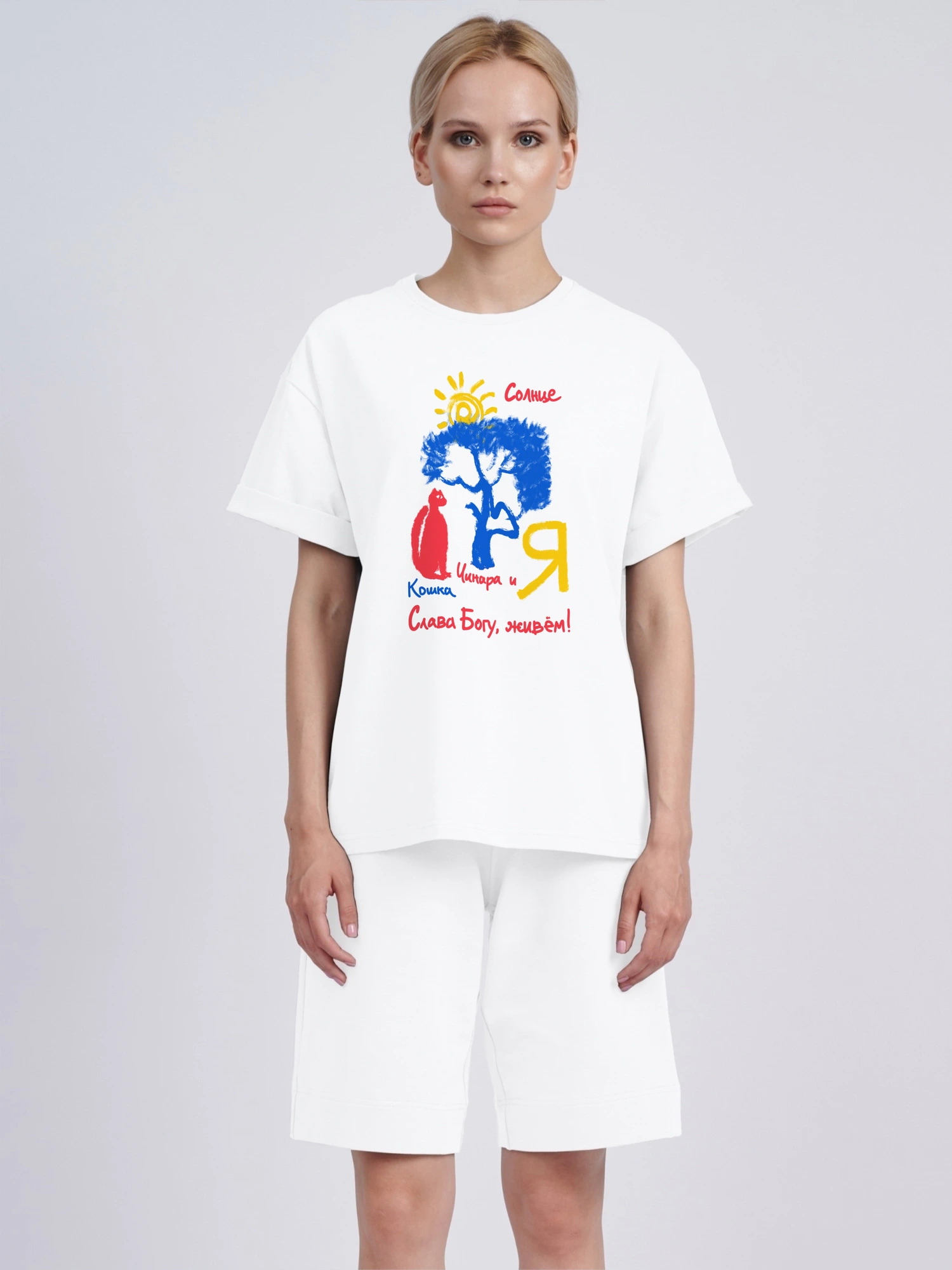 Футболка унисекс свободного силуэта оверсайз со спущенной плечевой линией. Выполнена из премиального качественного трикотажного полотна. Материал приятный к телу, хорошо стирается, долговечен в носке, сохраняет цвет ткани. Высококачественный пошив нашей собственной марки "Наивно? Очень". Внимательно выбирайте размер по таблице, которая размещена ниже на этой странице. Стиль оверсайз означает очень свободный покрой одежды. Футболку можно носить как с закатанными рукавами, так и с не закатанными. Смотрится как 2 разные футболки. Идеально сочетается с шортами, брюками и шапками нашего бренда, а также с джинсами, леггинсами и другими элементами вашего гардероба, создавая стильные образы.