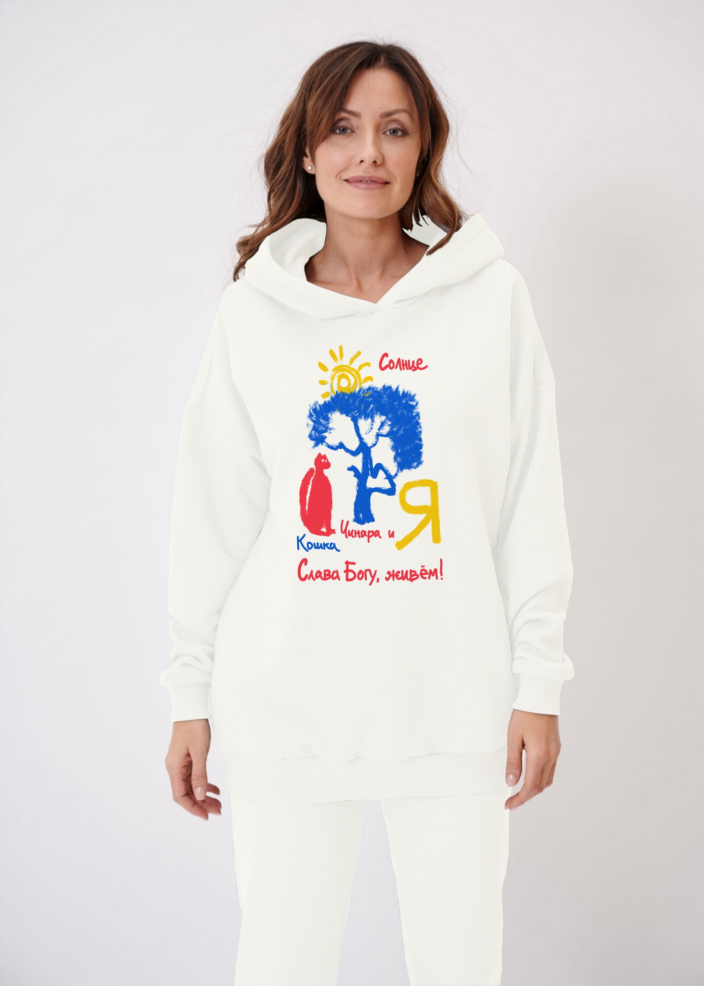 Все наши вещи фасона унисекс. Хорошо сидят и на женщинах, и на мужчинах. Нас часто спрашивали, а почему на фото только женщины. Поэтому мы сфотографировали их и на мужчинах.