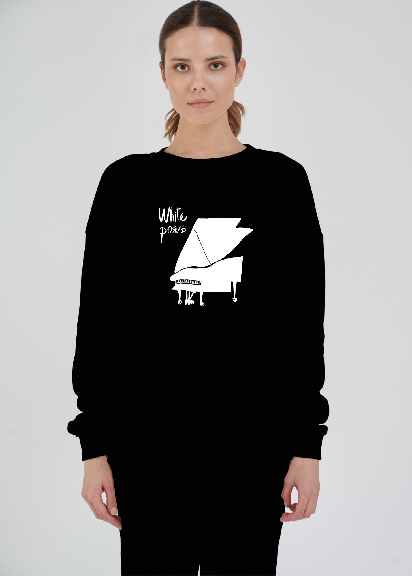 Параметры моделей на фото - 92-65-95 рост 175 см. На ней свитшот размера S (46) и 85-62-89 рост 174 см. На ней свитшот размера XS (44).