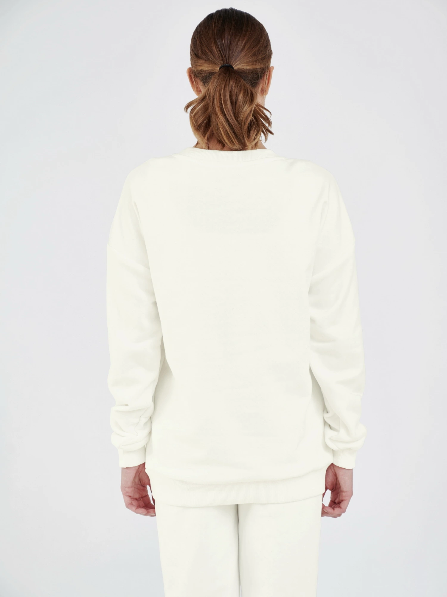 Параметры моделей на фото - 92-65-95 рост 175 см. На ней свитшот размера S (46) и 85-62-89 рост 174 см. На ней свитшот размера XS (44).