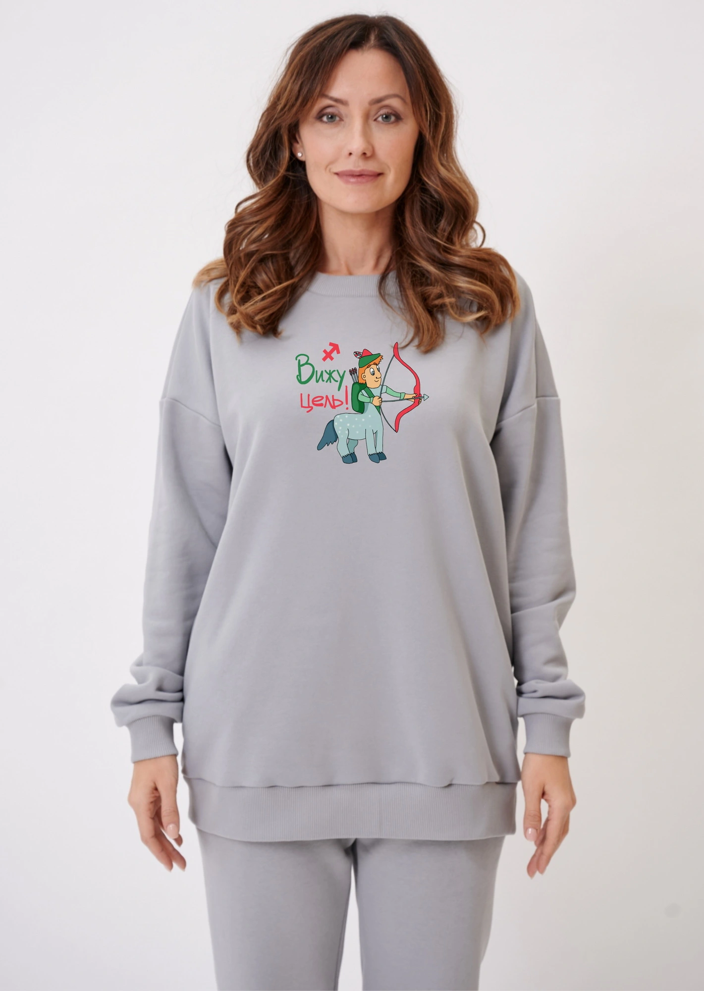 Параметры моделей на фото - 92-65-95 рост 175 см. На ней свитшот размера S (46) и 85-62-89 рост 174 см. На ней свитшот размера XS (44).